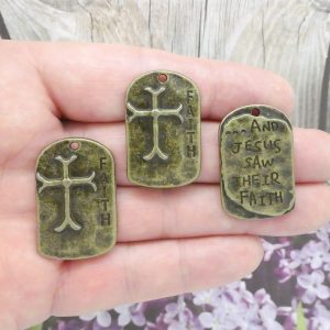 6 Faith Charms Bulk with Cross Dog Tag Bronze by TIJC SP1857B