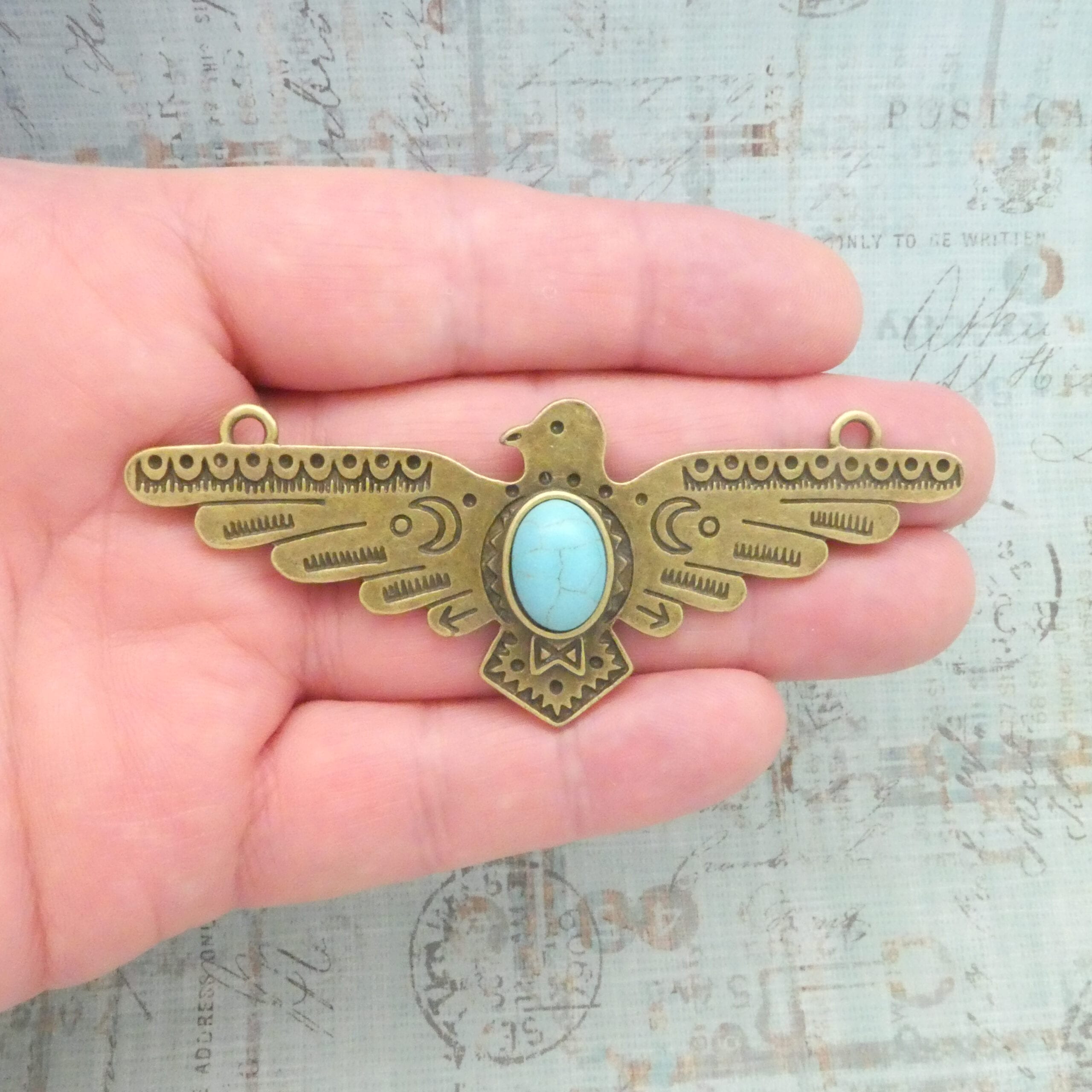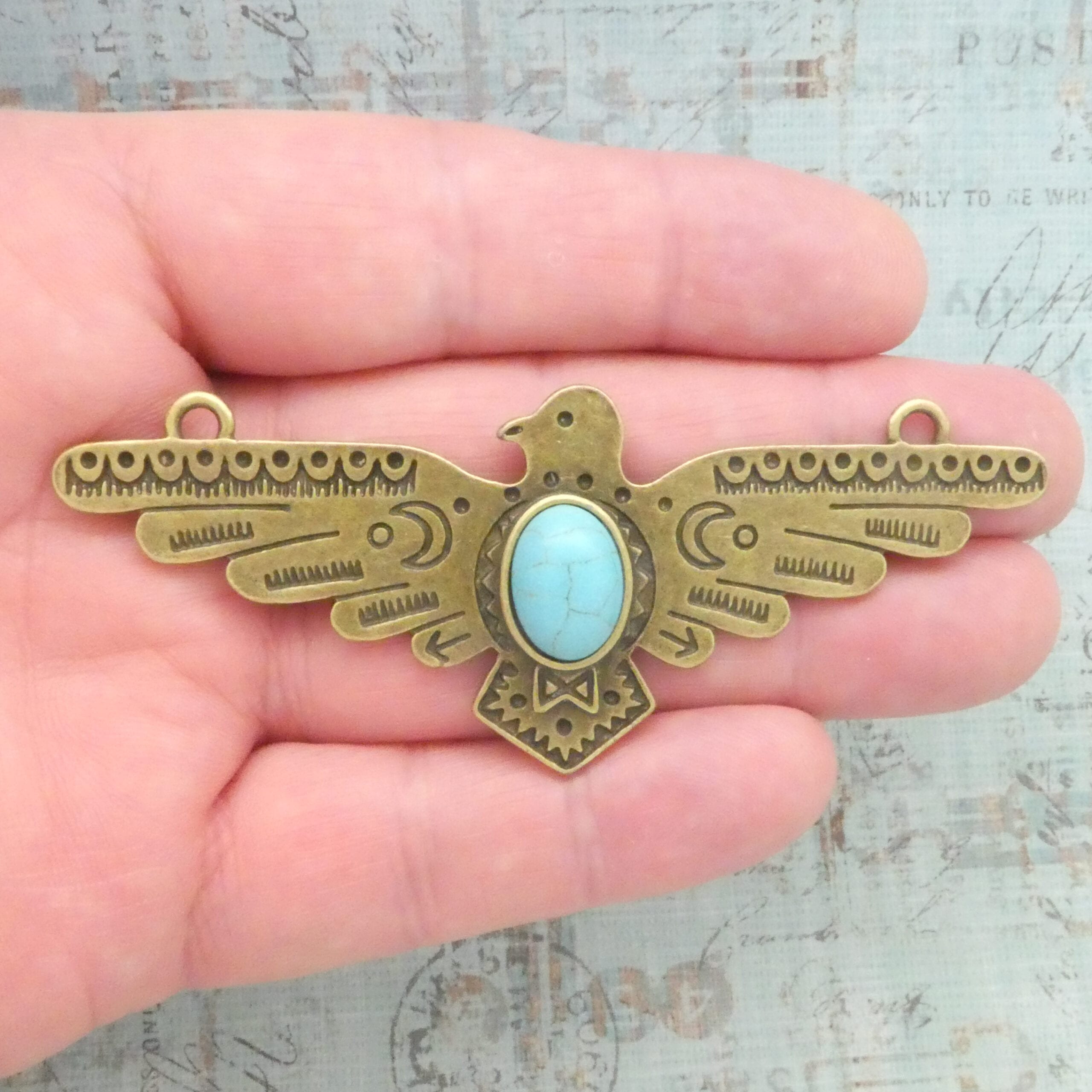 You will receive 1 – Bronze Thunderbird Charm Pendant with Magnesite Turquoise Stone for Southwest Jewelry in Pewter! These charms are a quality Pewter for all your jewelry and crafting projects!