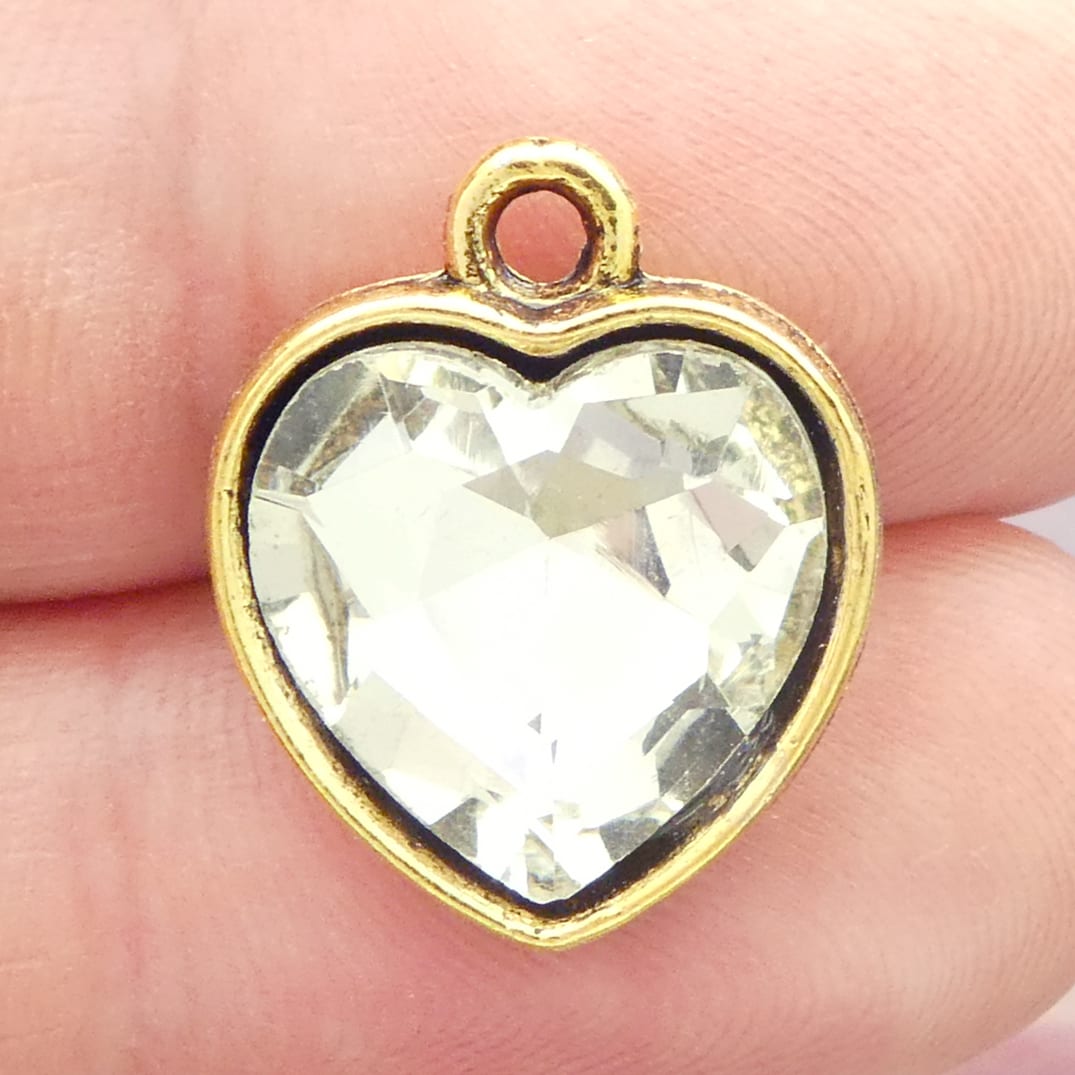 You will receive 1 – Clear Crystal Heart Charms in Gold Pewter! These charms are a quality Pewter for all your jewelry and crafting projects!