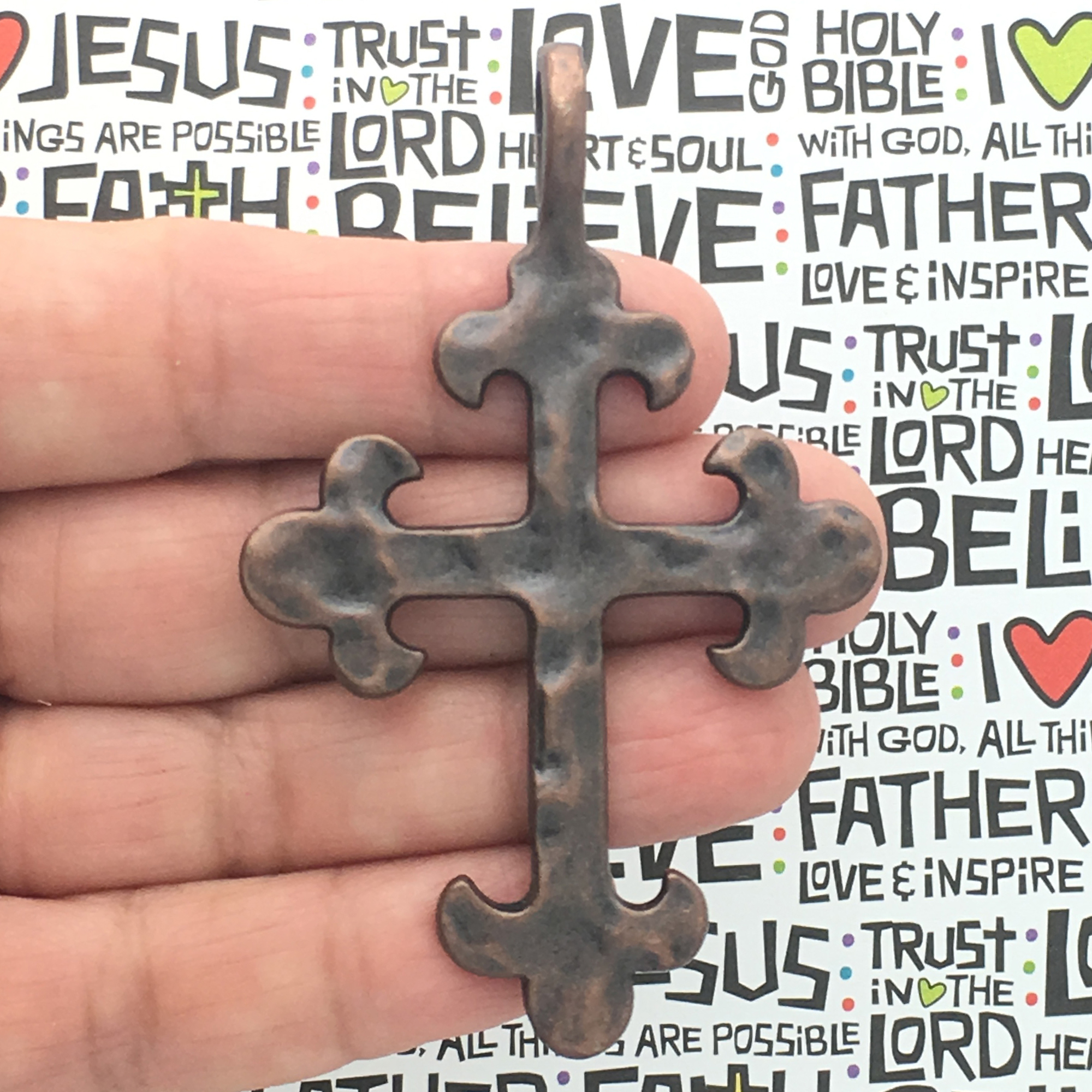 You will receive 1 – Extra Large Hammered Christian Cross Charm in Antique Copper Pewter. These charms are a quality Pewter for all your jewelry and crafting projects!
