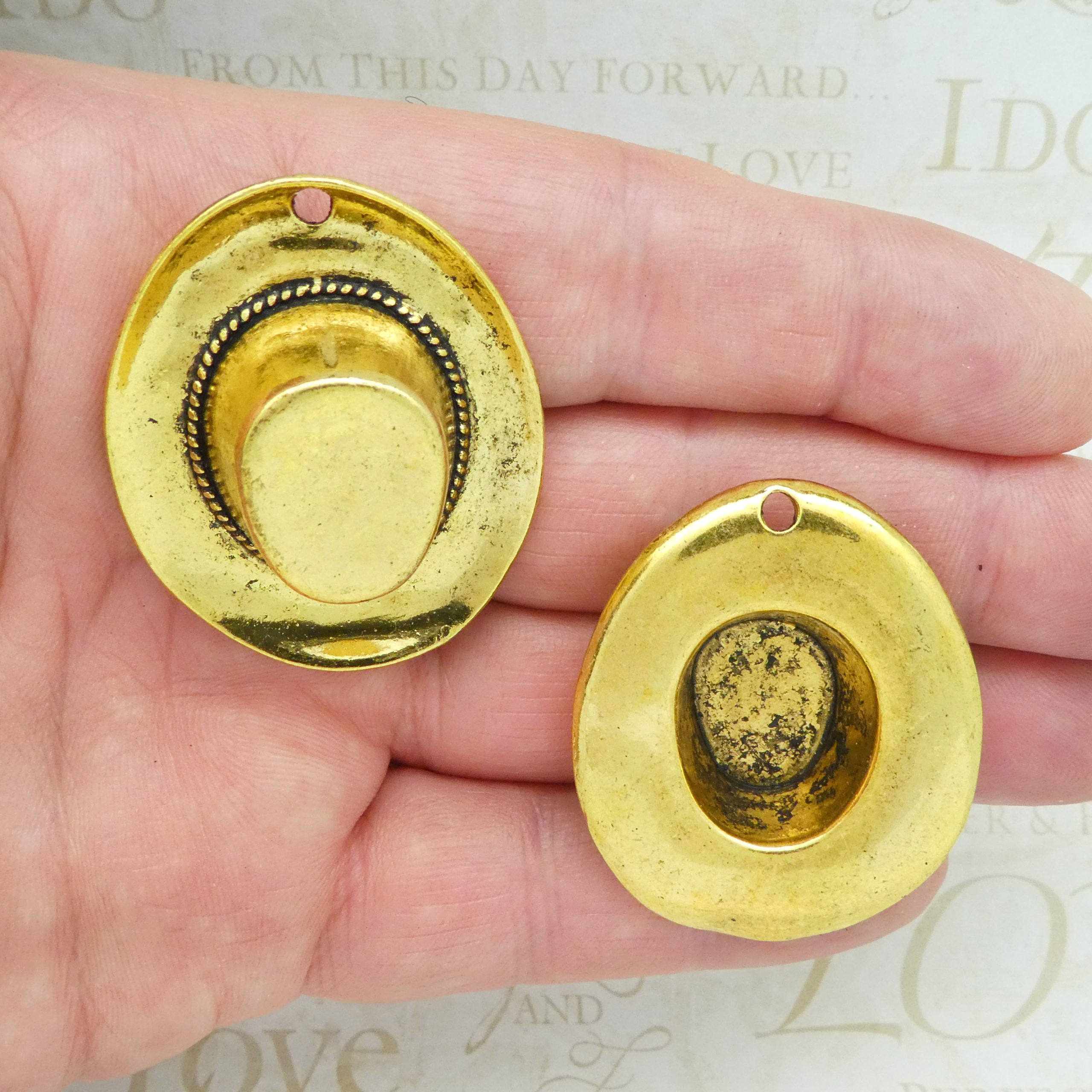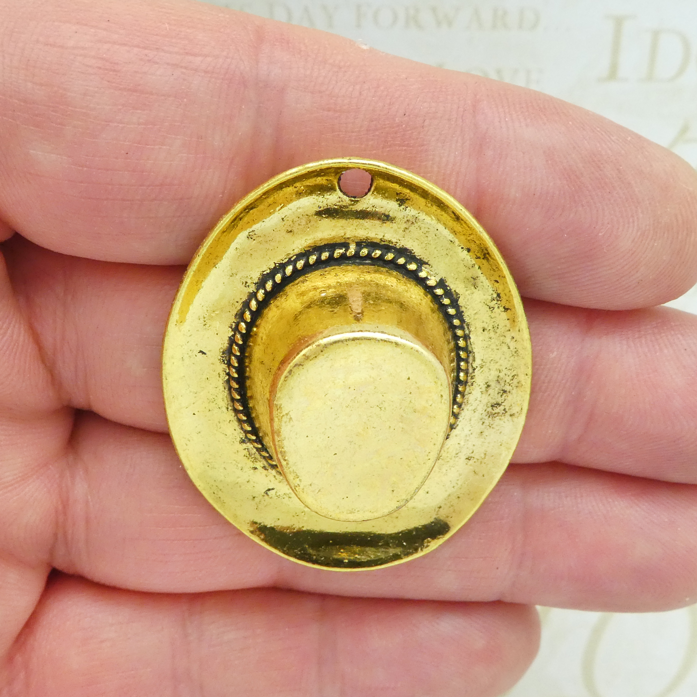 1 Cowboy Hat Charm Gold Large by TIJC SP1853