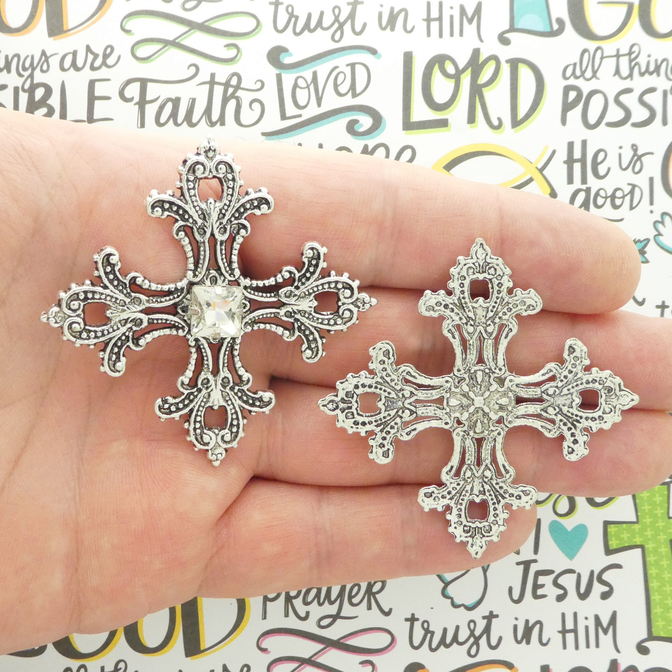 You will receive 1 – Silver Crystal Cross Scrapbook Embellishments by TIJC! These charms are a quality Silver Pewter for all your jewelry and crafting projects!