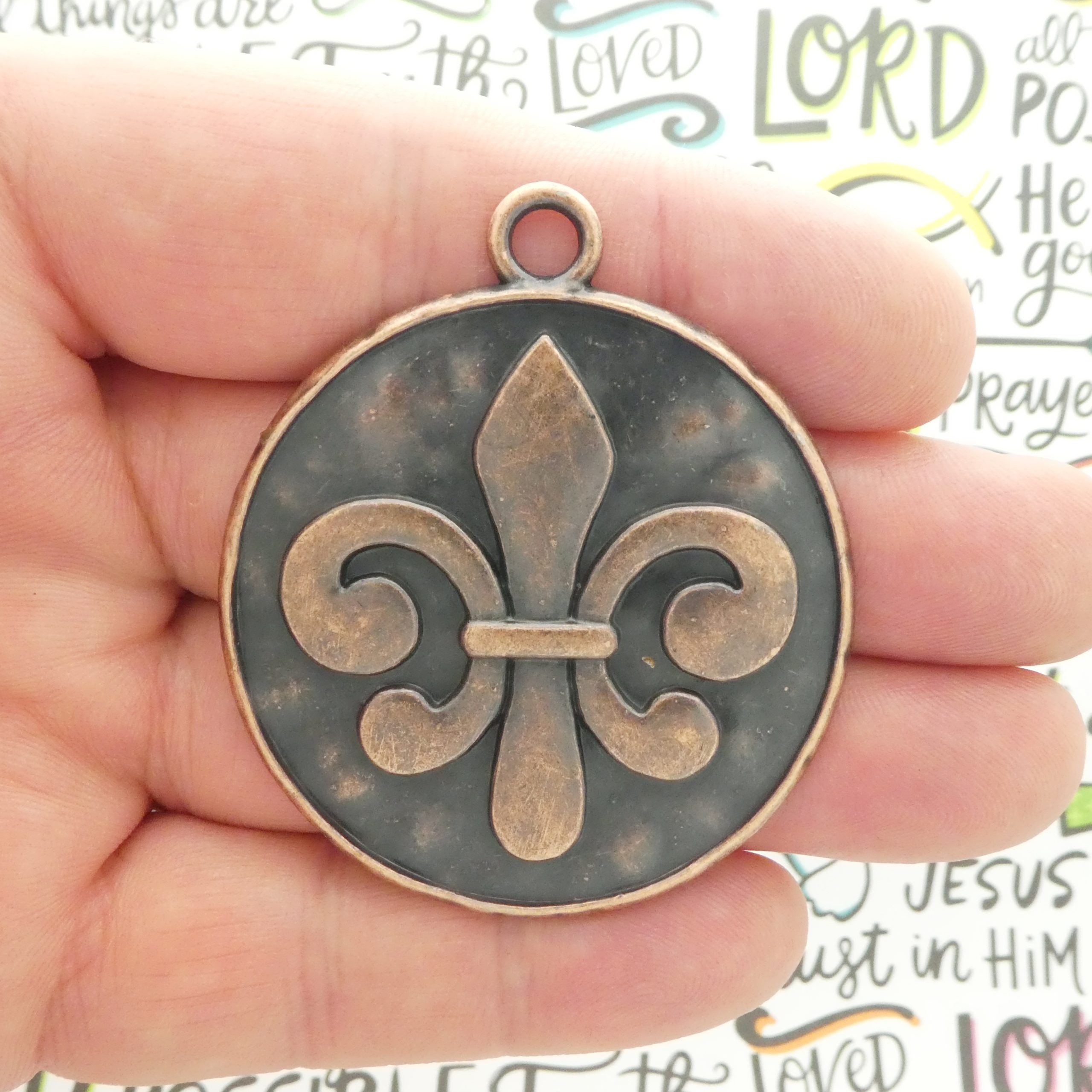 You will receive 1 – Round Hammered Fleur de Lis Charm in Copper Pewter by TIJC! These charms are a quality Pewter for all your jewelry and crafting projects!