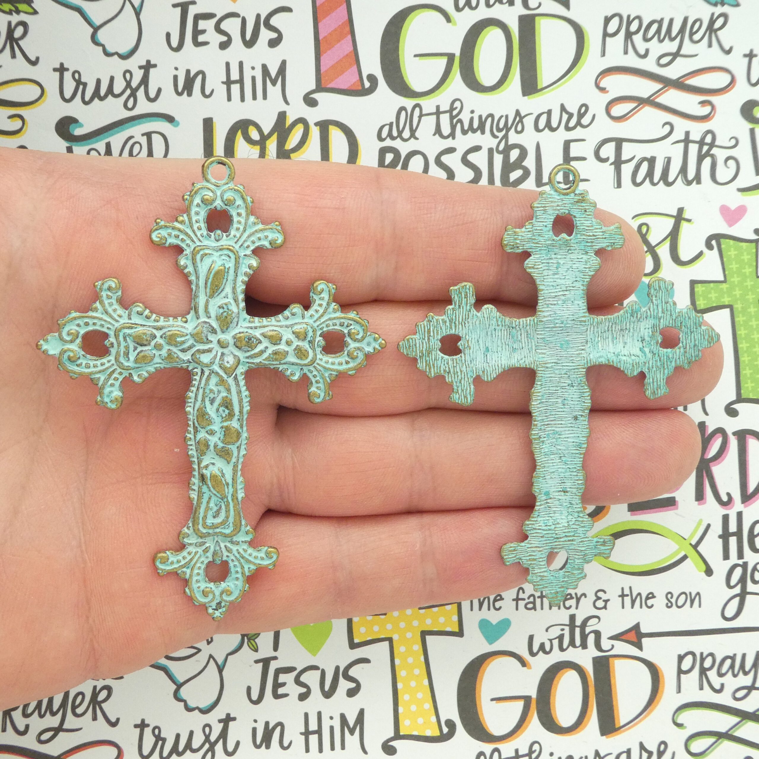 You will receive 1 – Ornate Large Gold Cross Charms with Flower Accents in Turquoise Oxidized Pewter. These charms are a quality Pewter for all your jewelry and crafting projects!