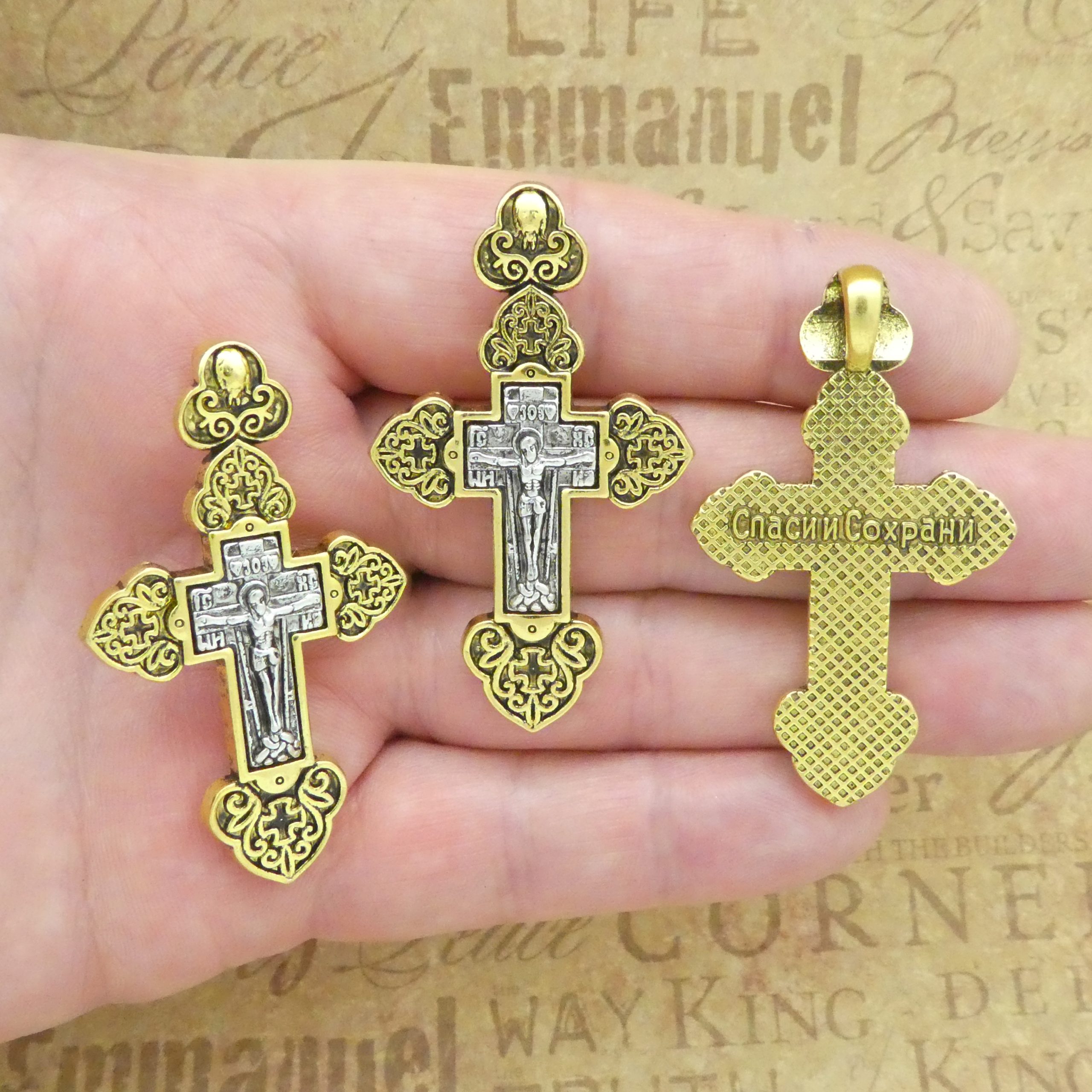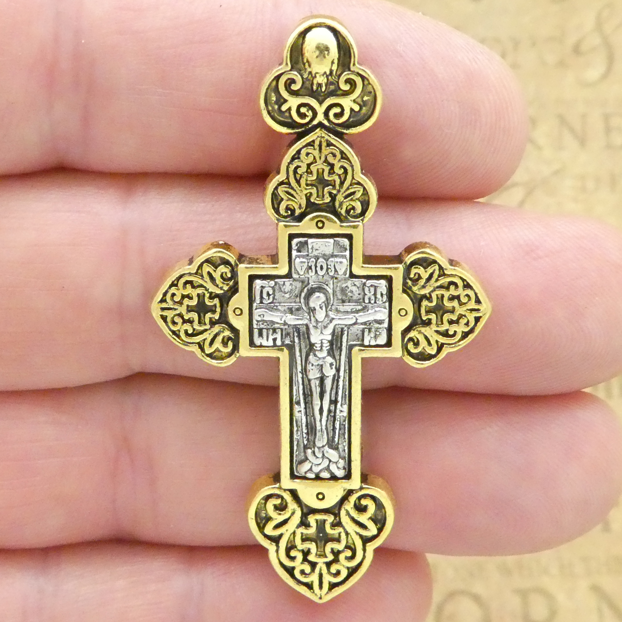 You will receive 1 – Large Ornate Catholic Rosary Gold Cross Crucifix Charms in Antique Pewter with Silver! Use this Antique Gold and Silver Pewter Cross for Rosary Parts in making a Catholic Rosary. These charms are a quality Pewter for all your jewelry and crafting projects!
