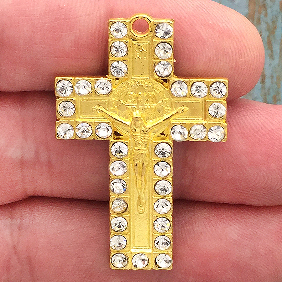 You will receive 1 – St Benedict Crucifix Cross Pendant with Crystal in Antique Gold Pewter. These charms are a quality Pewter for all your jewelry and crafting projects!
