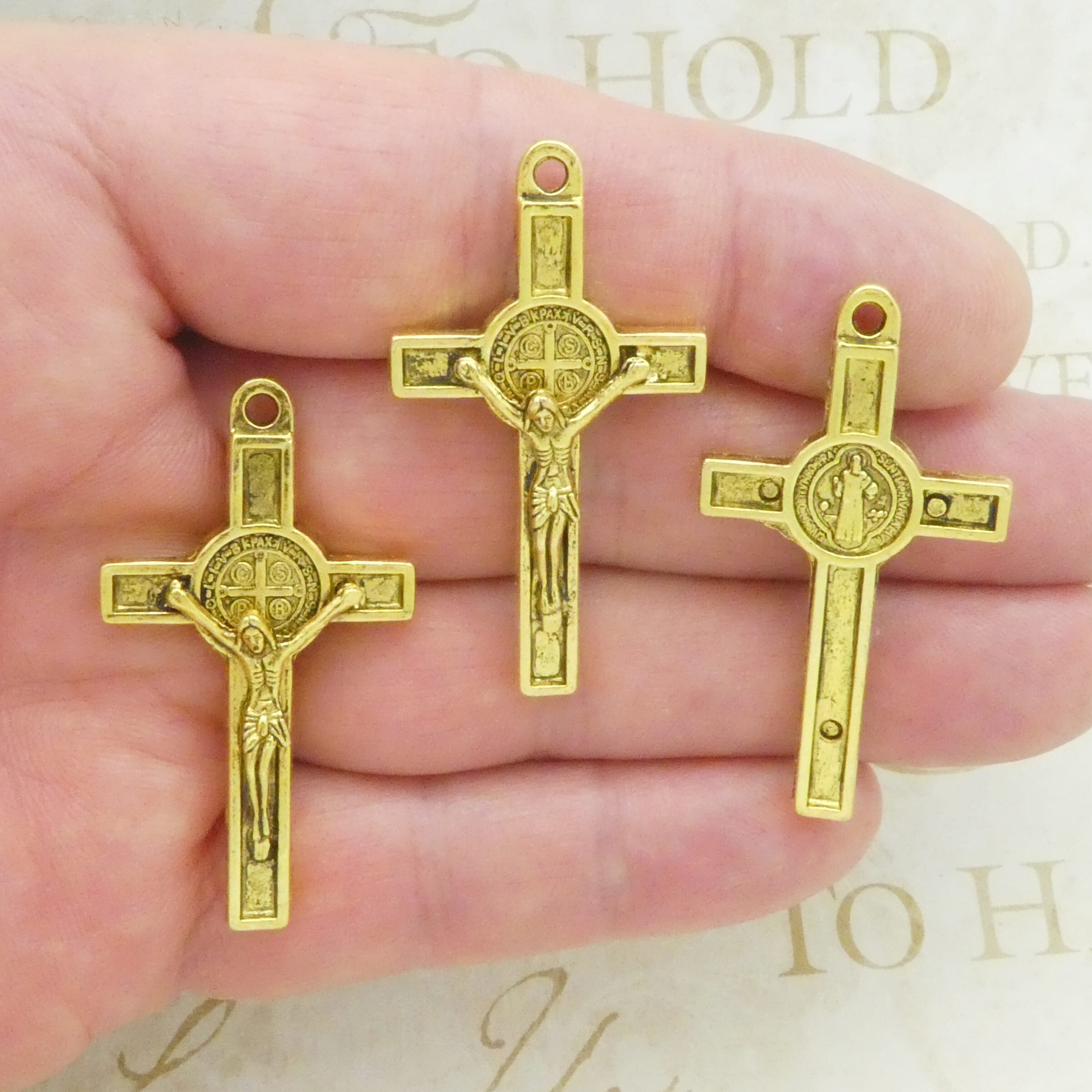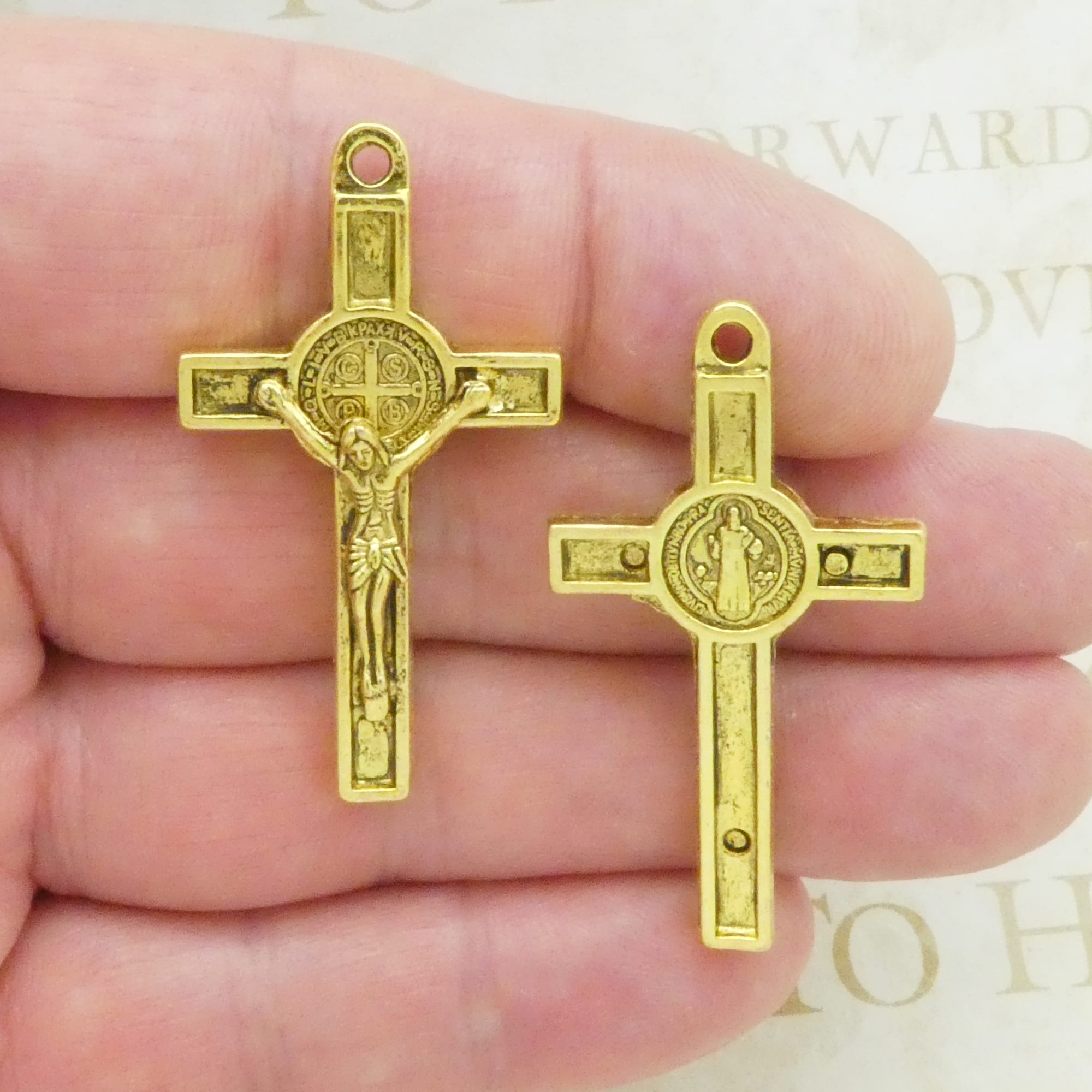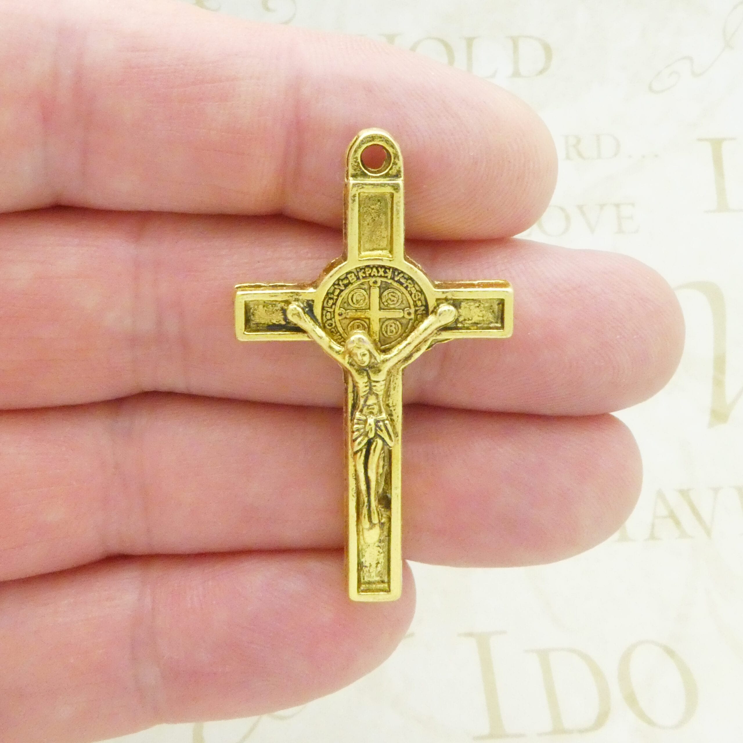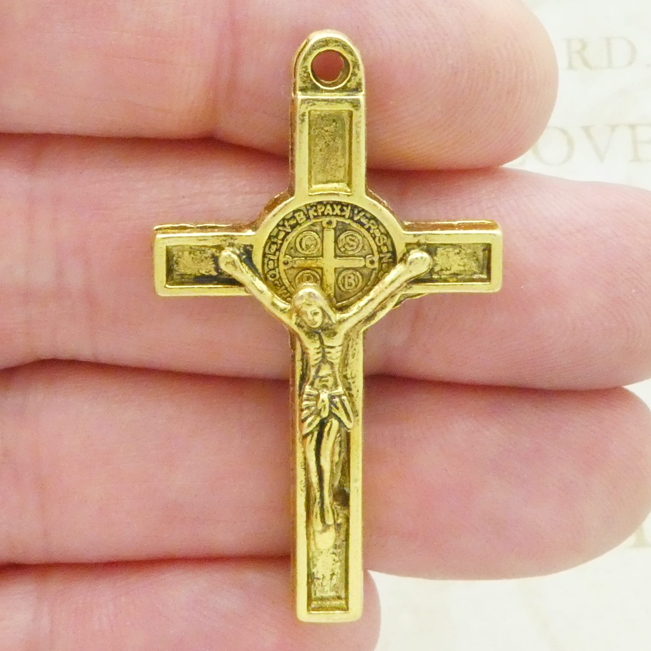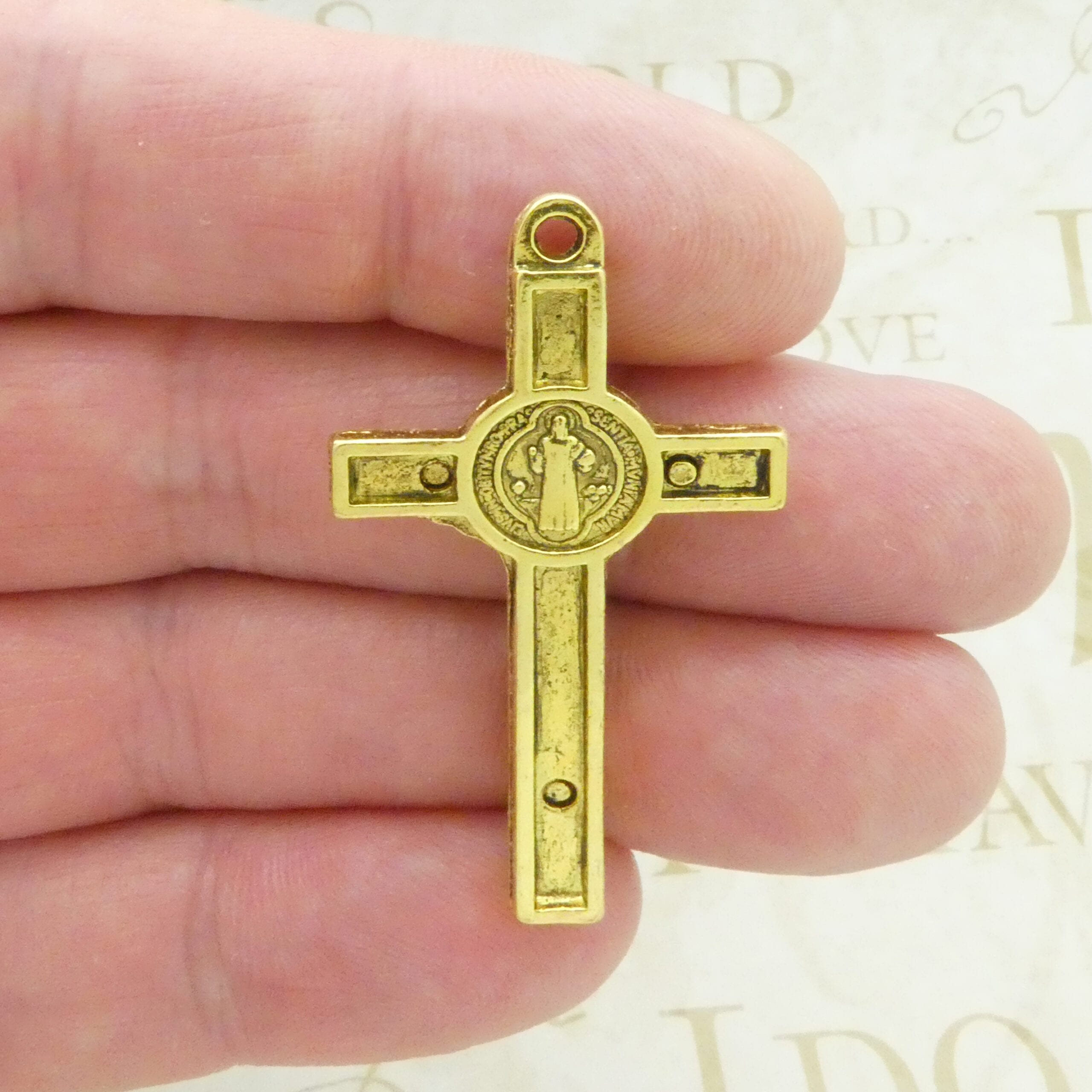 You will receive 1 – Medium St Benedict Crucifix Cross Pendant in Antique Gold Pewter by TIJC. These charms are a quality Pewter for all your jewelry and crafting projects!