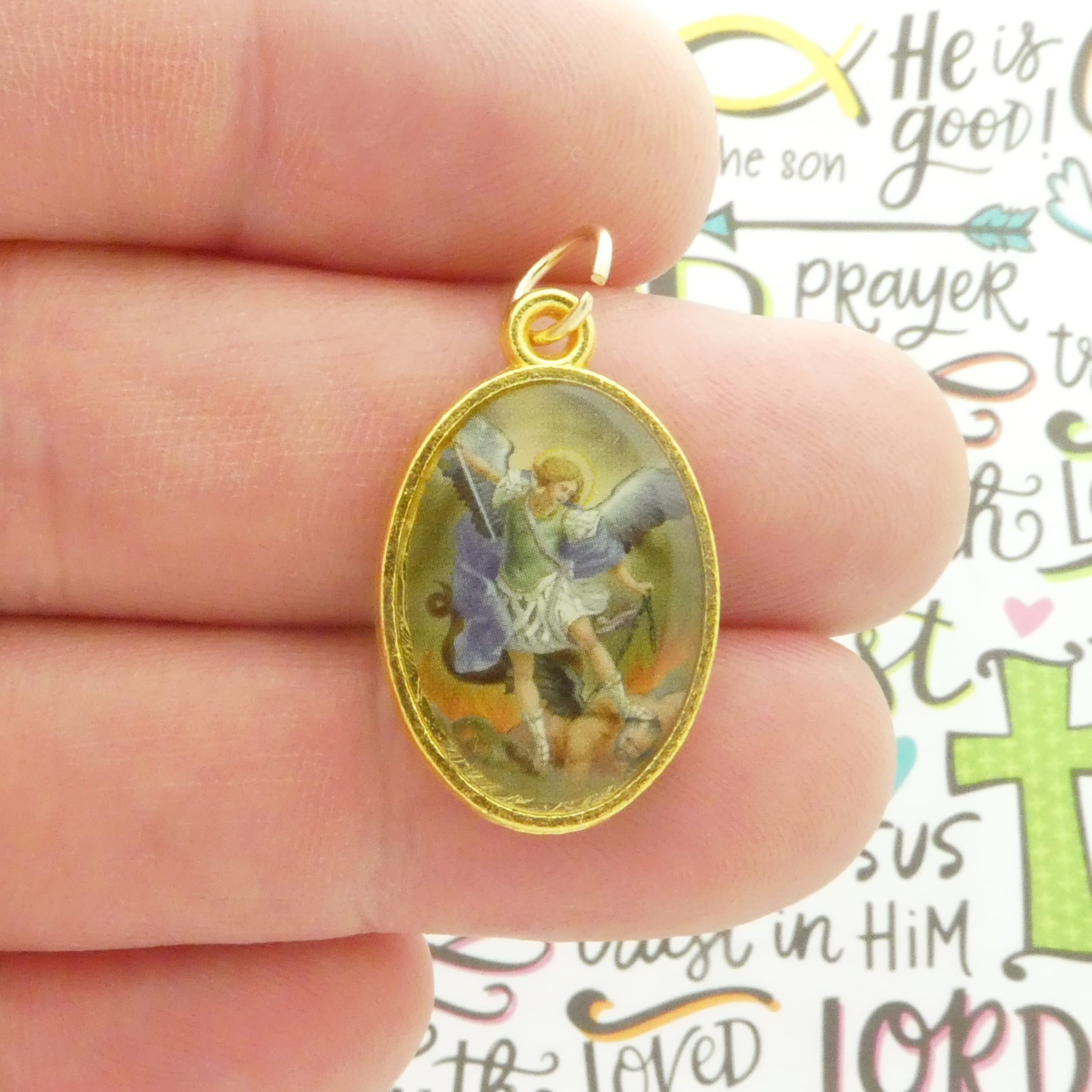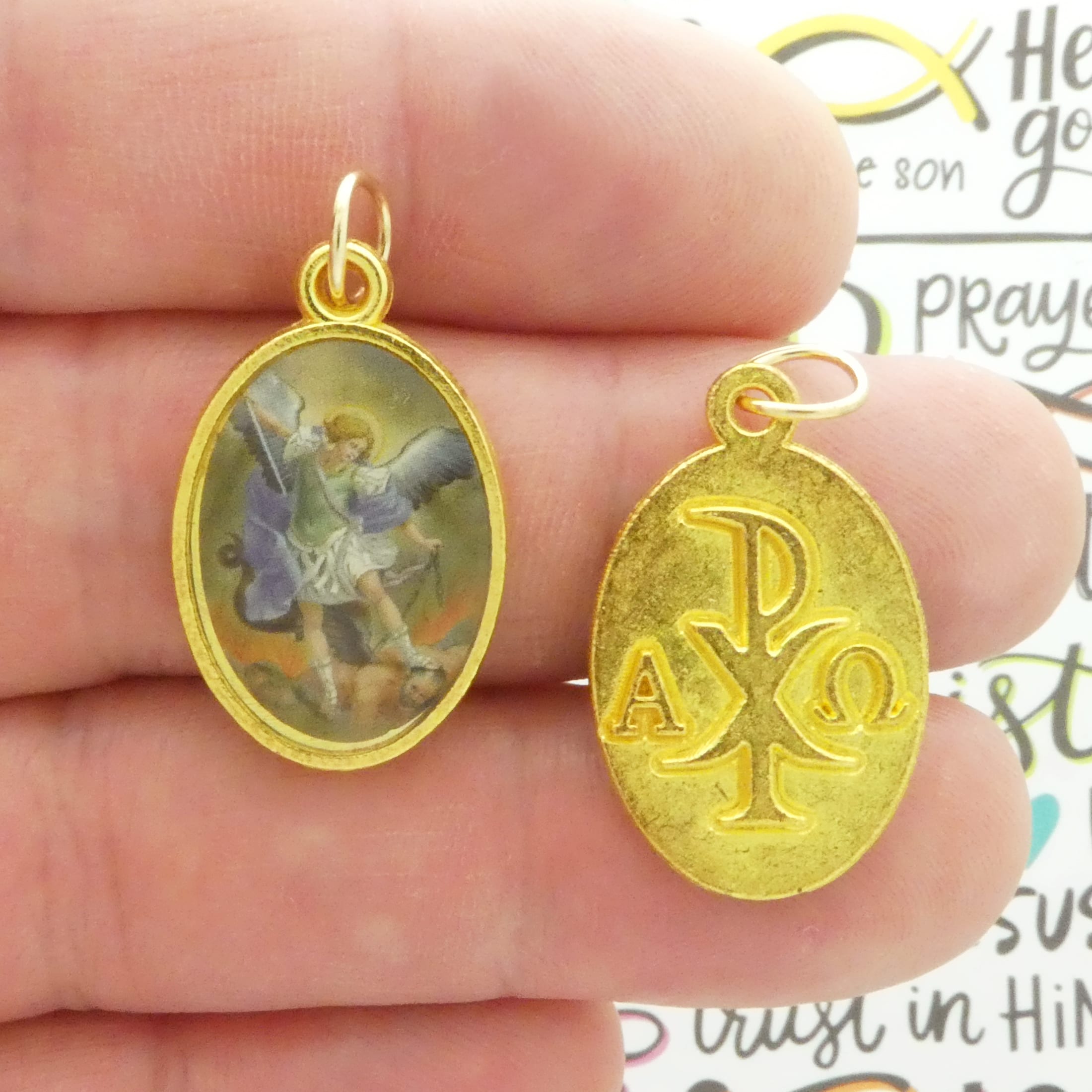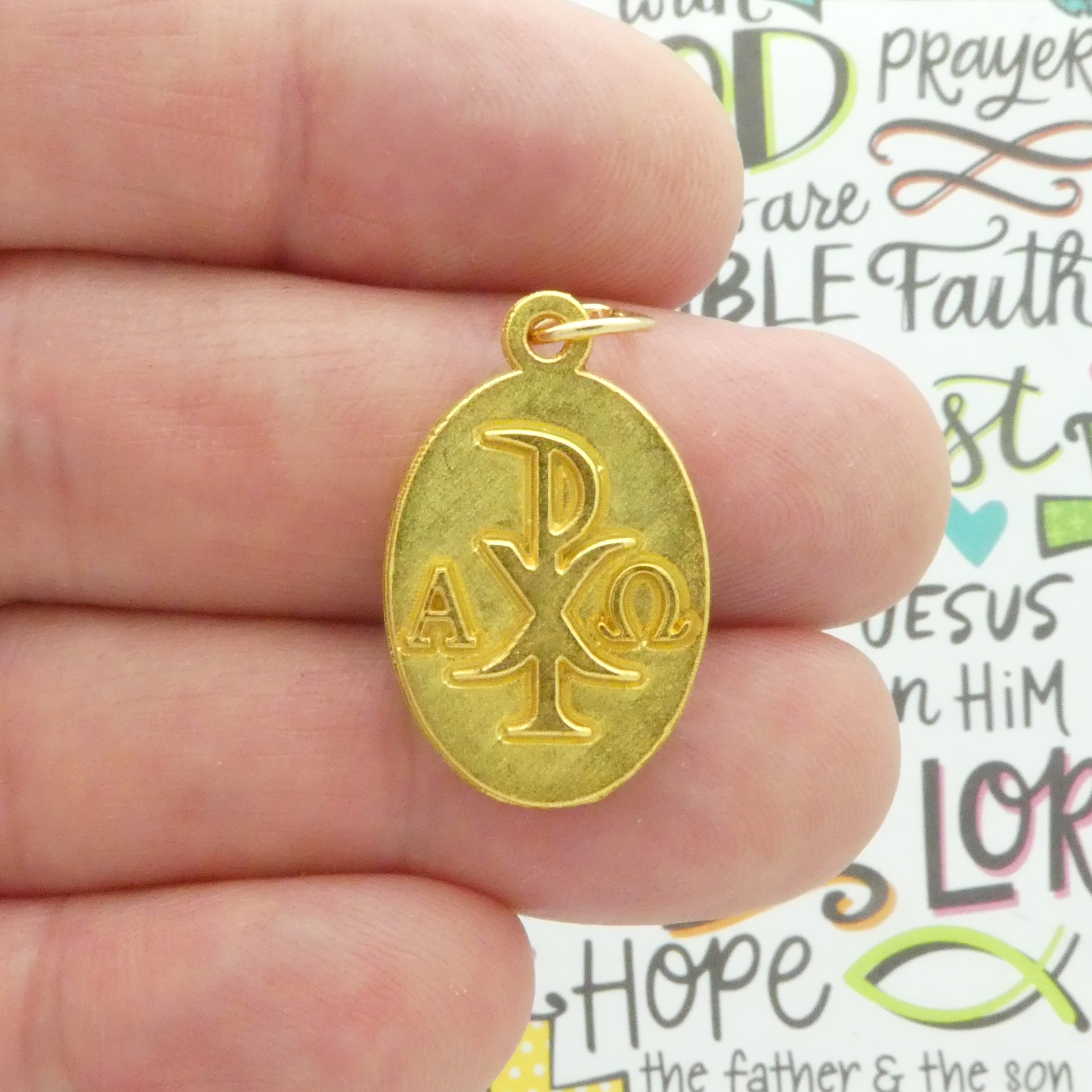 You will receive 1 – Double Sided Gold St Michael Archangel Angel Charm with Spread Wings with Chi Rho Alpha and Omega Symbol on other side by TIJC. Makes the perfect Angel center piece for your project. These charms are a quality Pewter for all your jewelry and crafting projects!