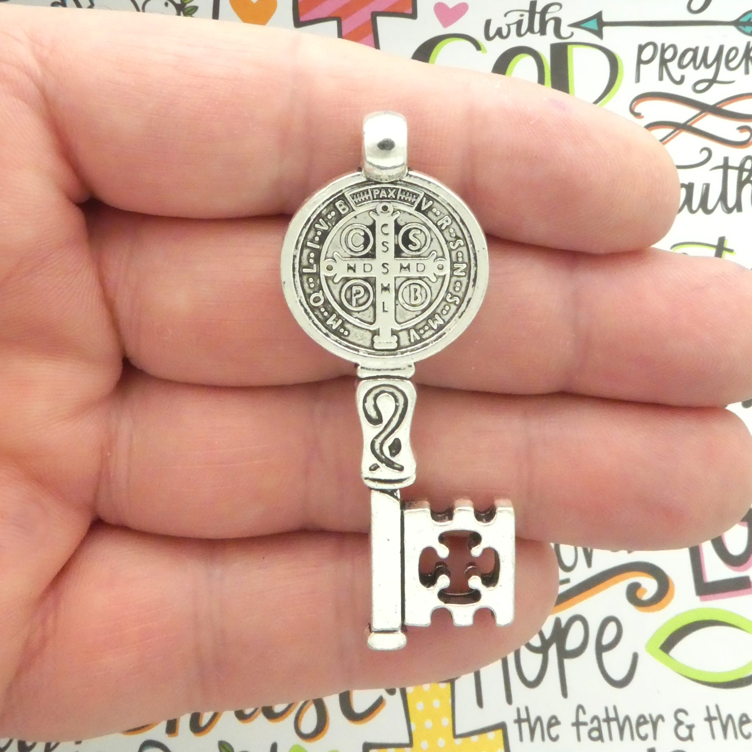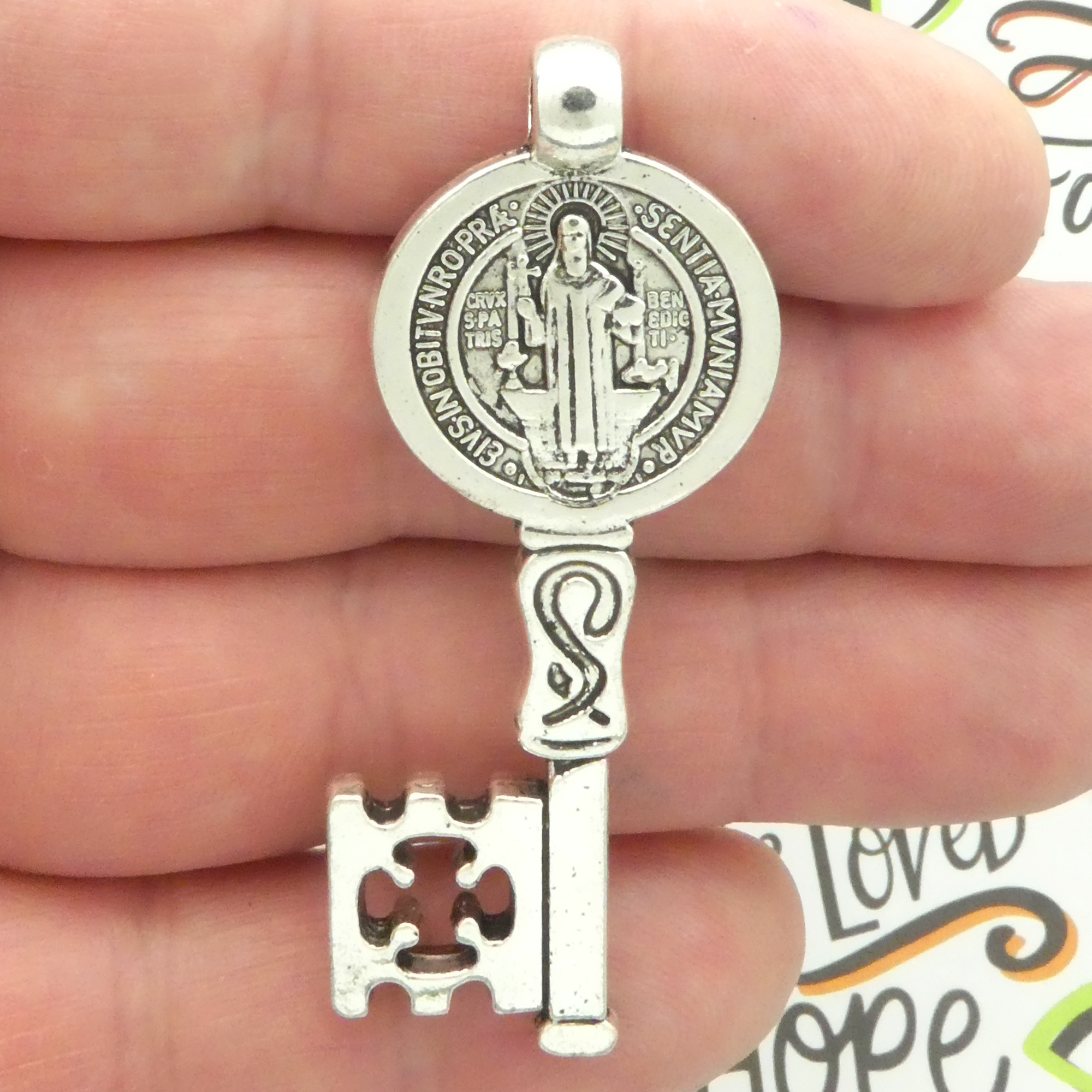 You will receive 1 – Large Double Sided St Benedict Medal in Silver Pewter. These charms are a quality Silver Pewter for all your jewelry and crafting projects!