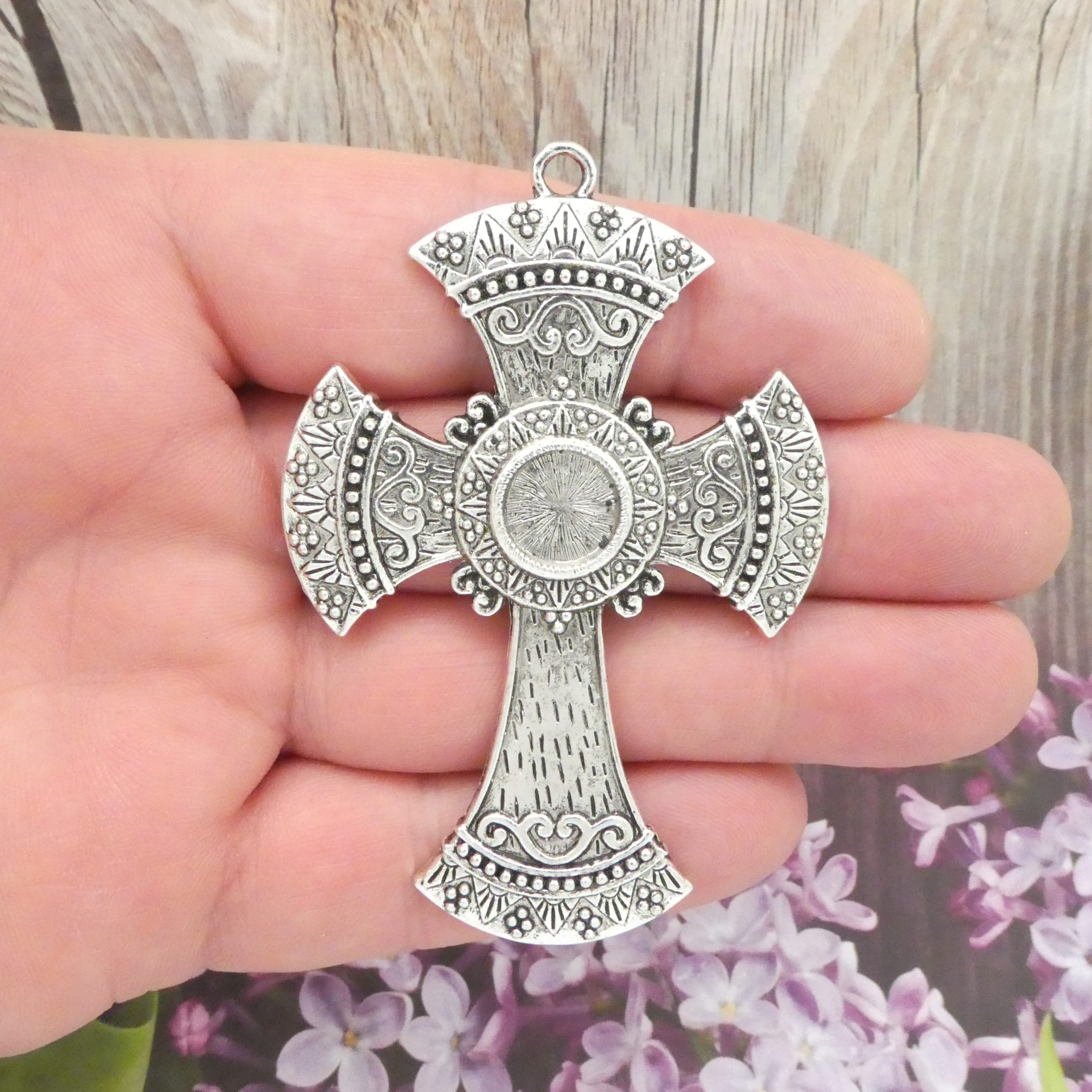 You will receive 1 – Ornate Extra Large Cross Charms in Antique Silver Pewter. These charms are a quality Silver Pewter for all your jewelry and crafting projects!