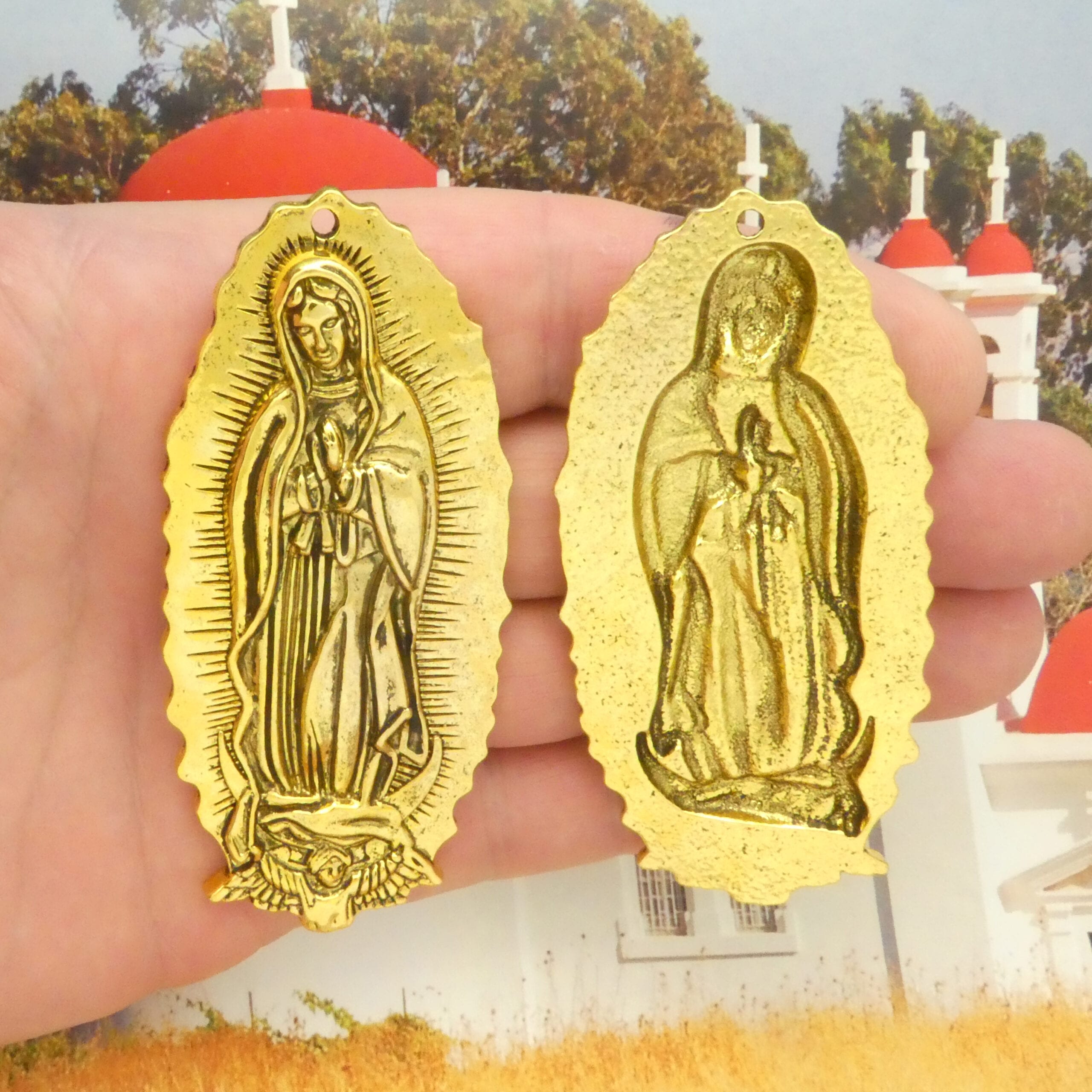 You will receive 1 – Large Antique Gold Pewter Lady Guadalupe Virgin Mary Pendant by TIJC. These charms are a quality Pewter for all your jewelry and crafting projects!