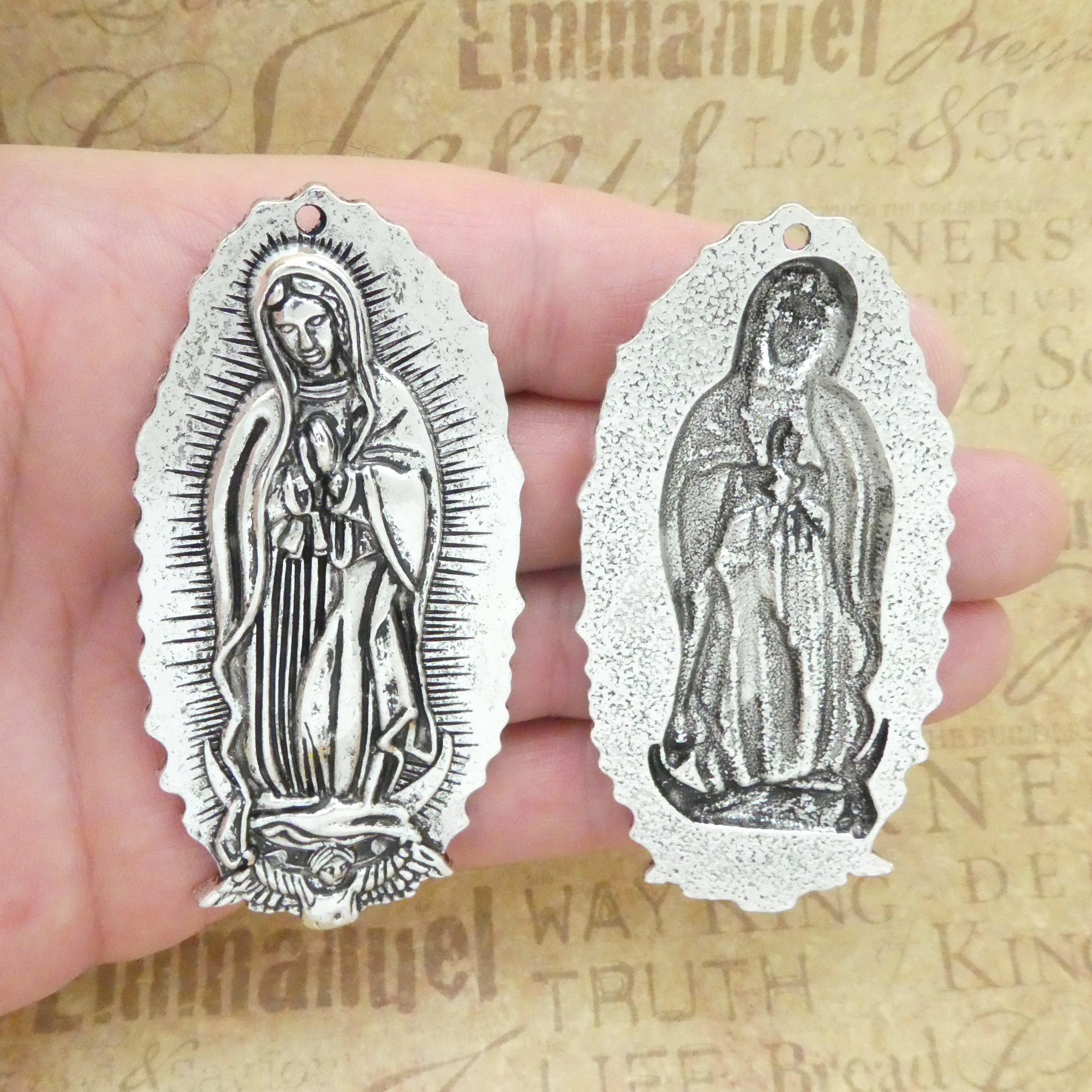 You will receive 1 – Large Antique Silver Pewter Lady Guadalupe Virgin Mary Pendant by TIJC. These charms are a quality Silver Pewter for all your jewelry and crafting projects!