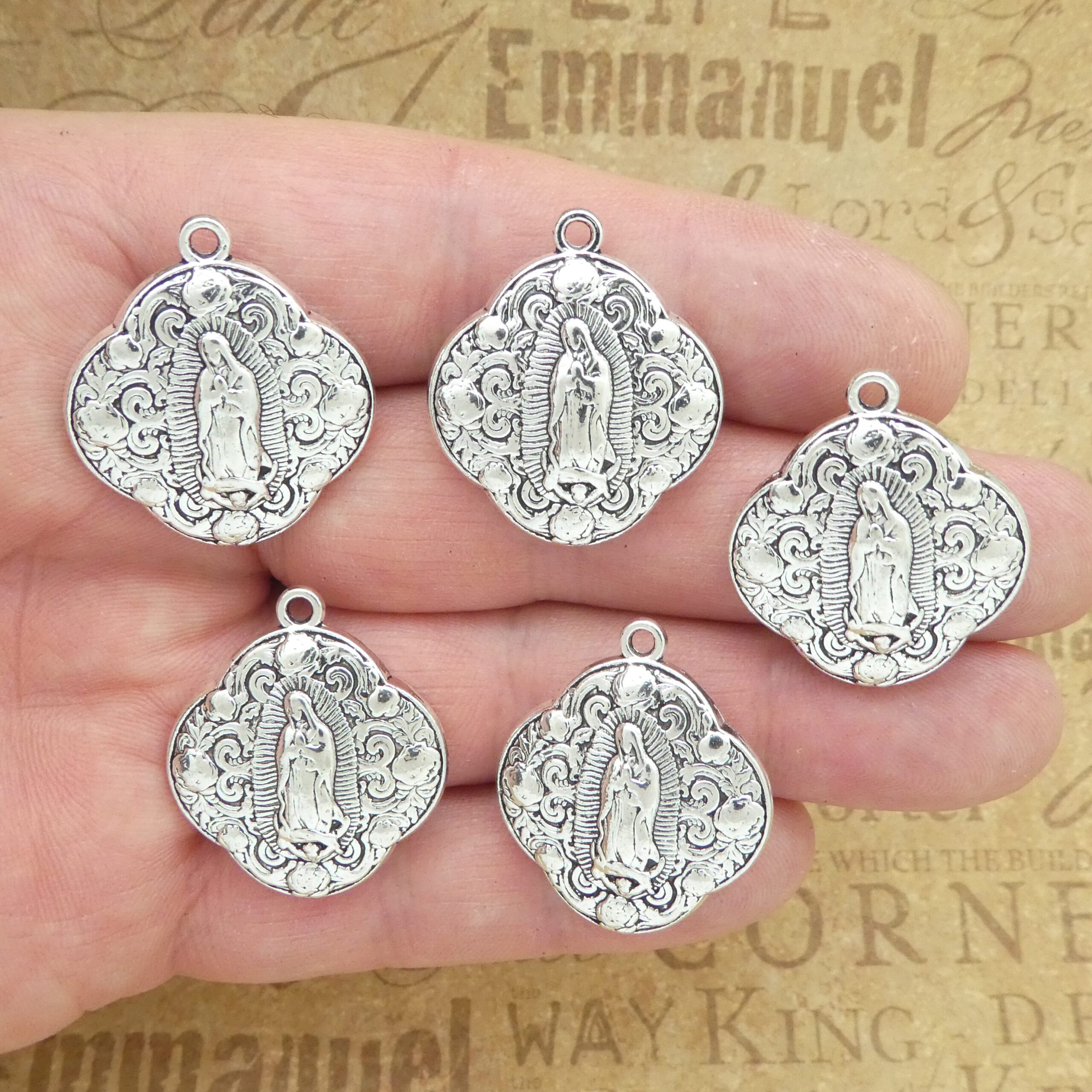 You will receive 1 – Antique Silver Pewter Lady Guadalupe Virgin Mary Pendant. These charms are a quality Silver Pewter for all your jewelry and crafting projects!