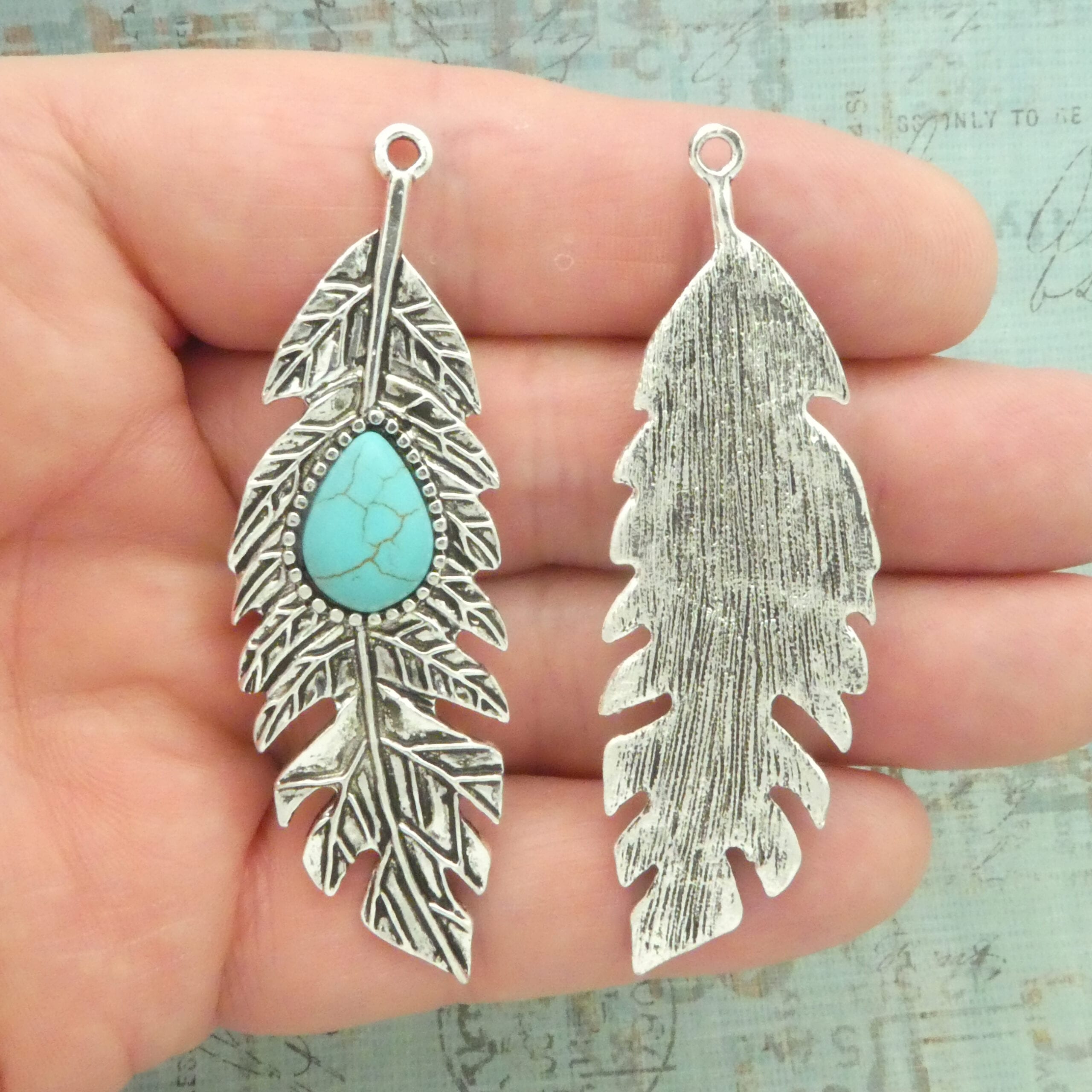 turquoise feather pendants bulk in silver pewter