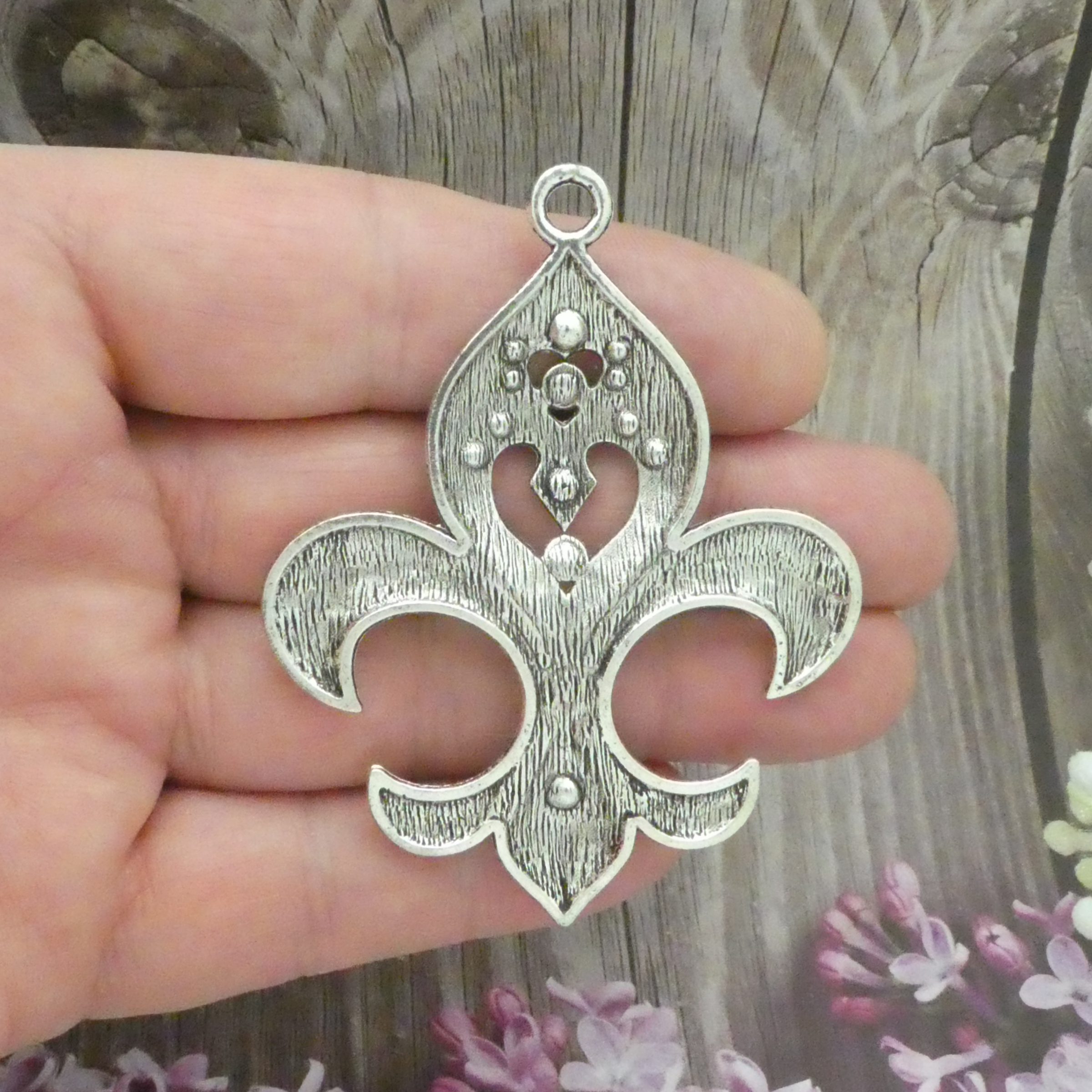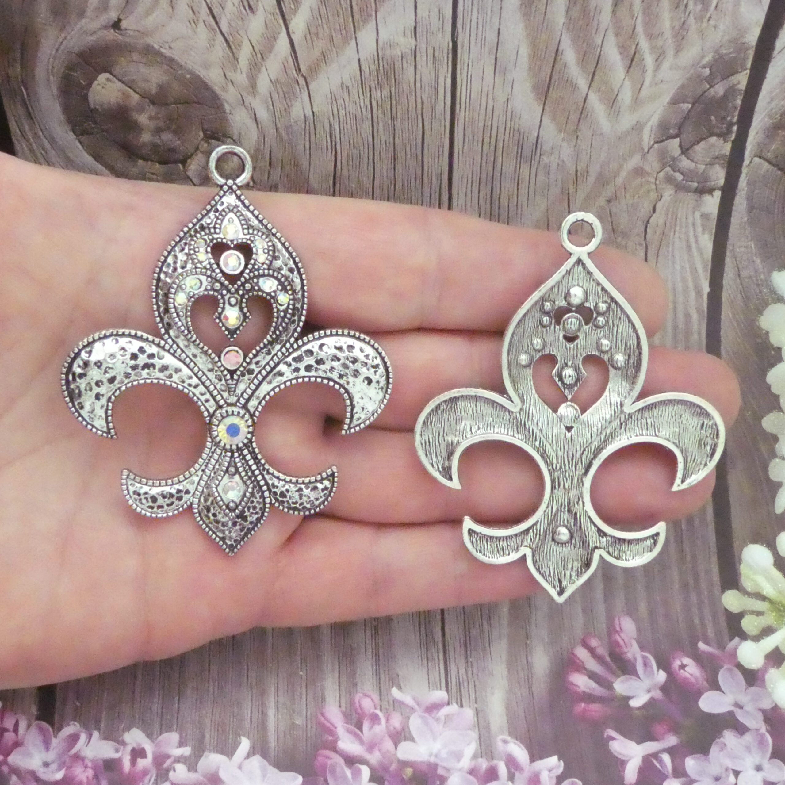 You will receive 1 – Silver Fleur De Lis Pendant with AB Crystal Accents in Antique Pewter! These charms are a quality Silver Pewter for all your jewelry and crafting projects!