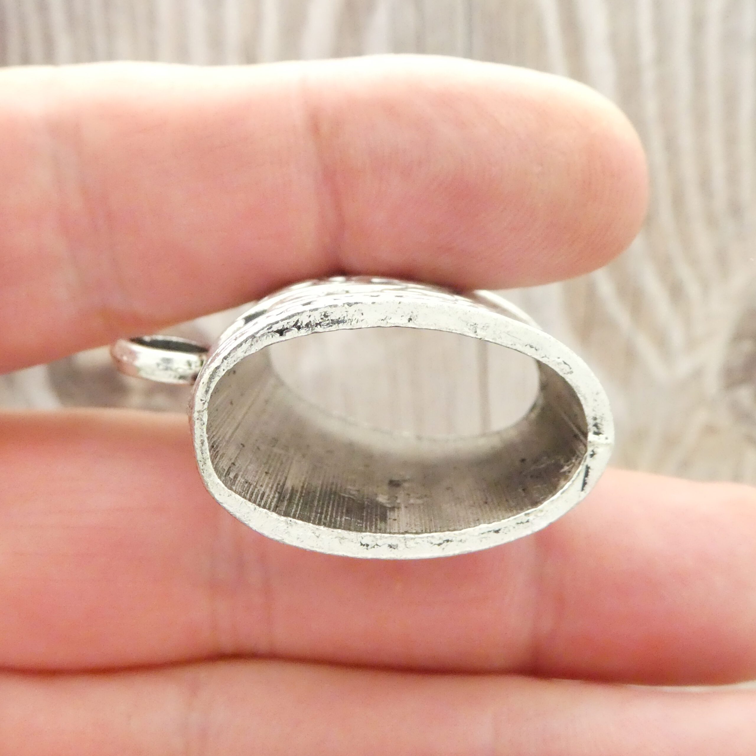 You will receive 1 – Extra Large Jewelry Bails with Floral Design in Silver Pewter! This Bail has a 25x13mm Hole. These charms are a quality Silver Pewter for all your jewelry and crafting projects!