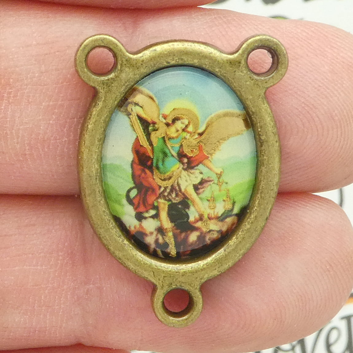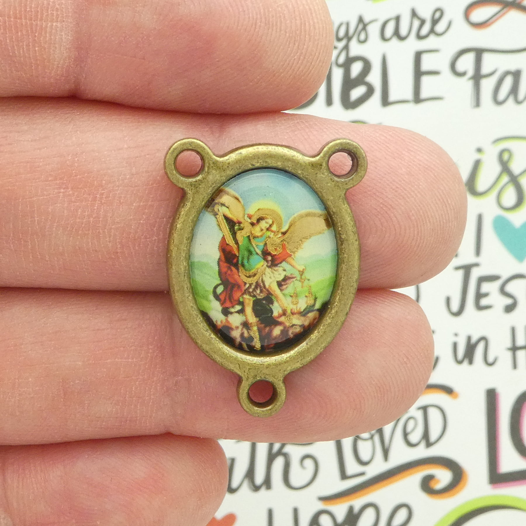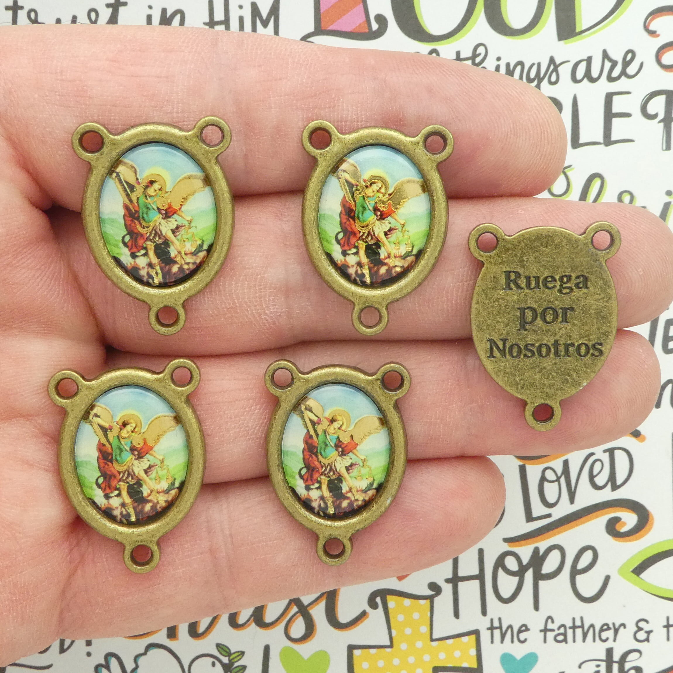 You will receive 1 – Bronze St Michael Archangel Angel Rosary Centers in Spanish by TIJC! Makes the perfect Angel center piece for your project. These charms are a quality Pewter for all your jewelry and crafting projects!