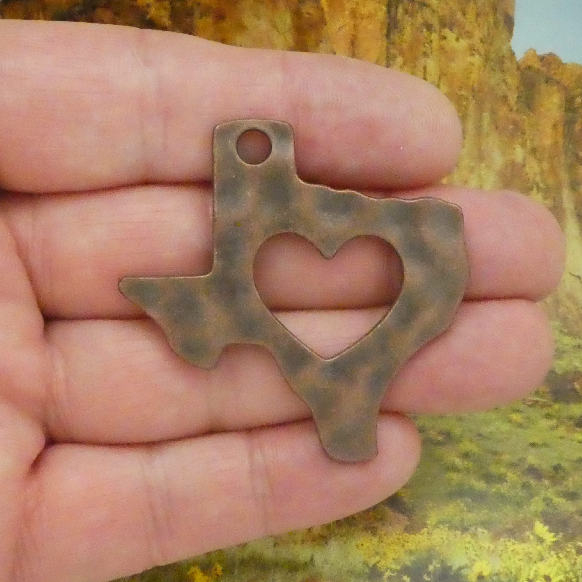 You will receive 1 – State of Texas Charm in Copper Pewter with Cutout Heart by TIJC! These charms are a quality Copper Pewter for all your jewelry and crafting projects!