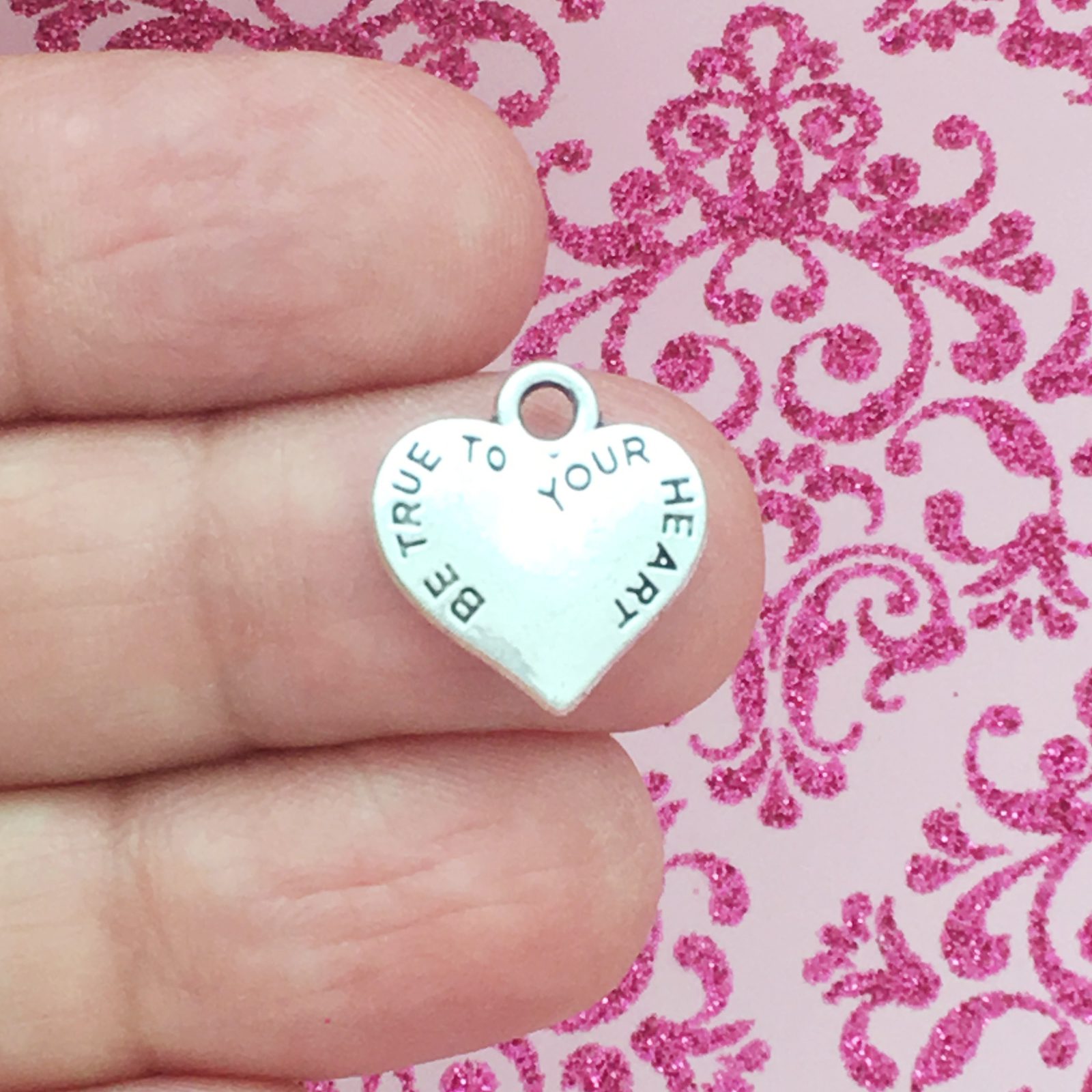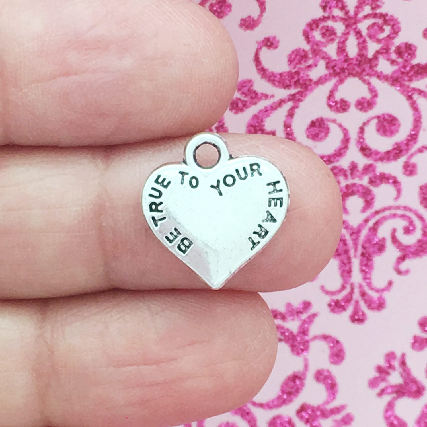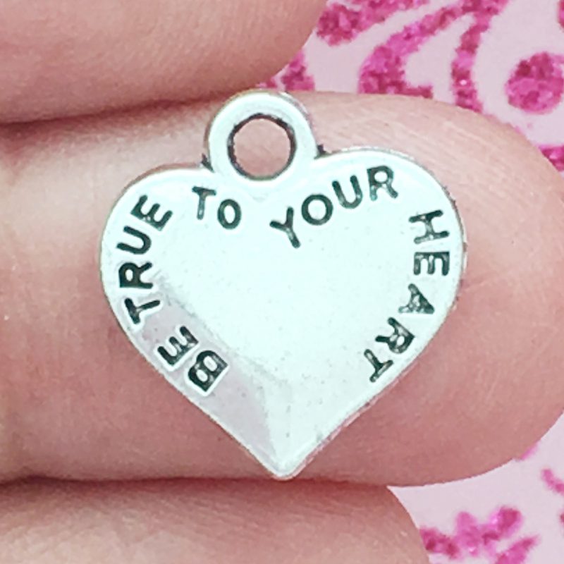 You will receive 10 – Affirmation Silver Heart Charm in Antique Pewter with quote Be True To Your Heart by TIJC. These charms are a quality Silver Pewter for all your jewelry and crafting projects!