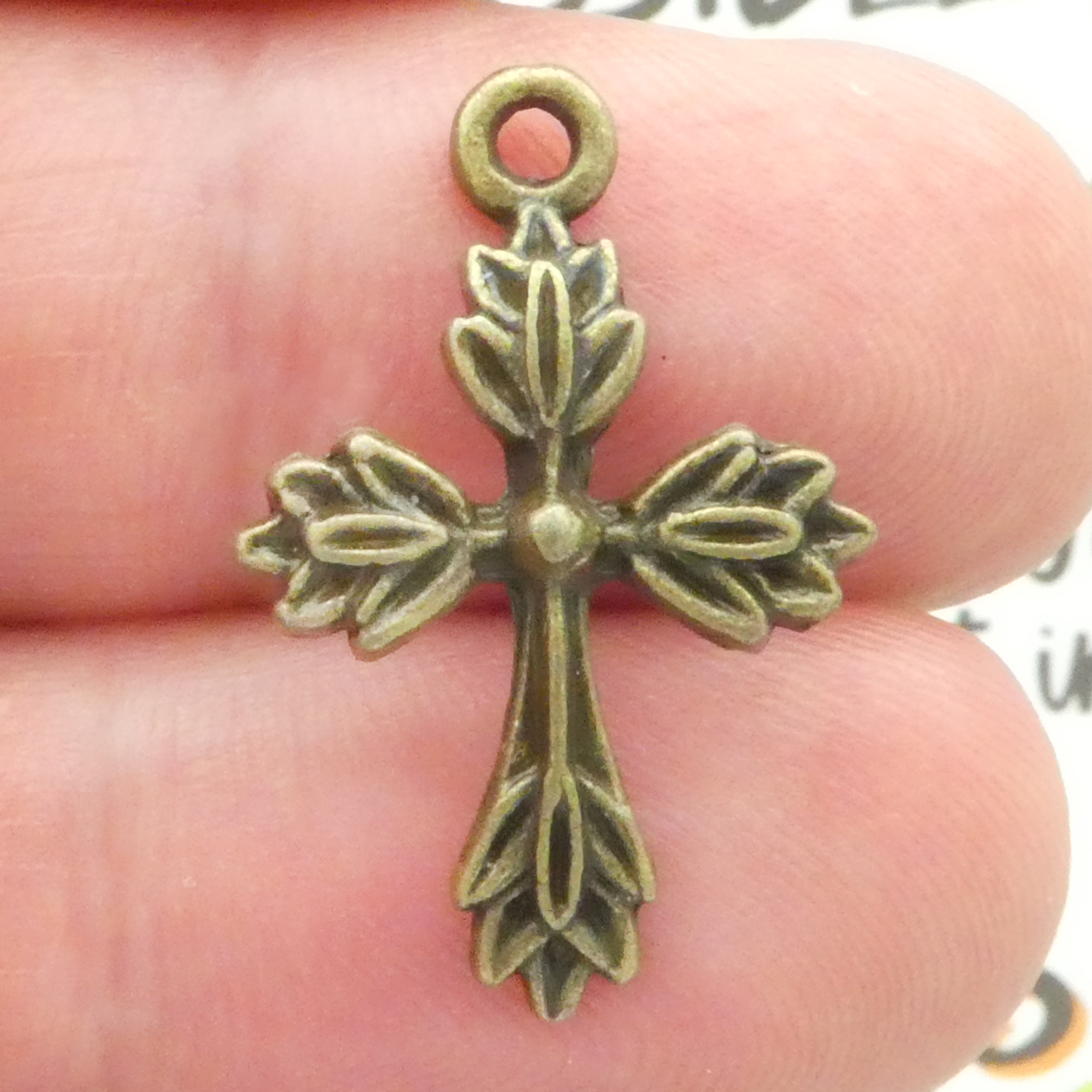 You will receive 10 – Christian Cross Charms in Bronze Pewter with Leaf Accents by TIJC! These charms are a quality Pewter for all your jewelry and crafting projects!