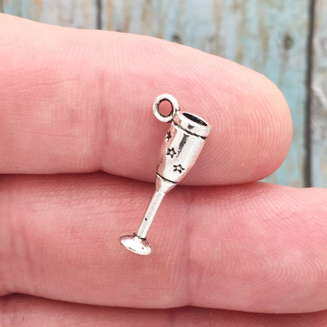 You will receive 10 – 3D Champagne Charms in Antique Silver Pewter. These charms are a quality Silver Pewter for all your jewelry and crafting projects!