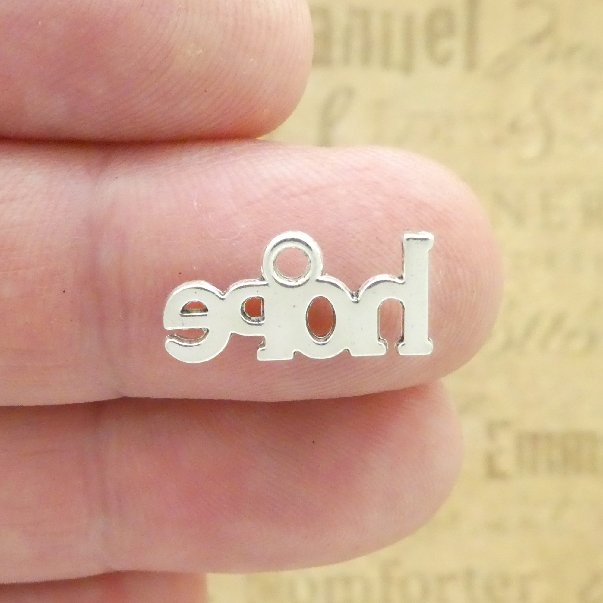 You will receive 10 – Word Hope Charms in Antique Silver Pewter! These charms are a quality Silver Pewter for all your jewelry and crafting projects!