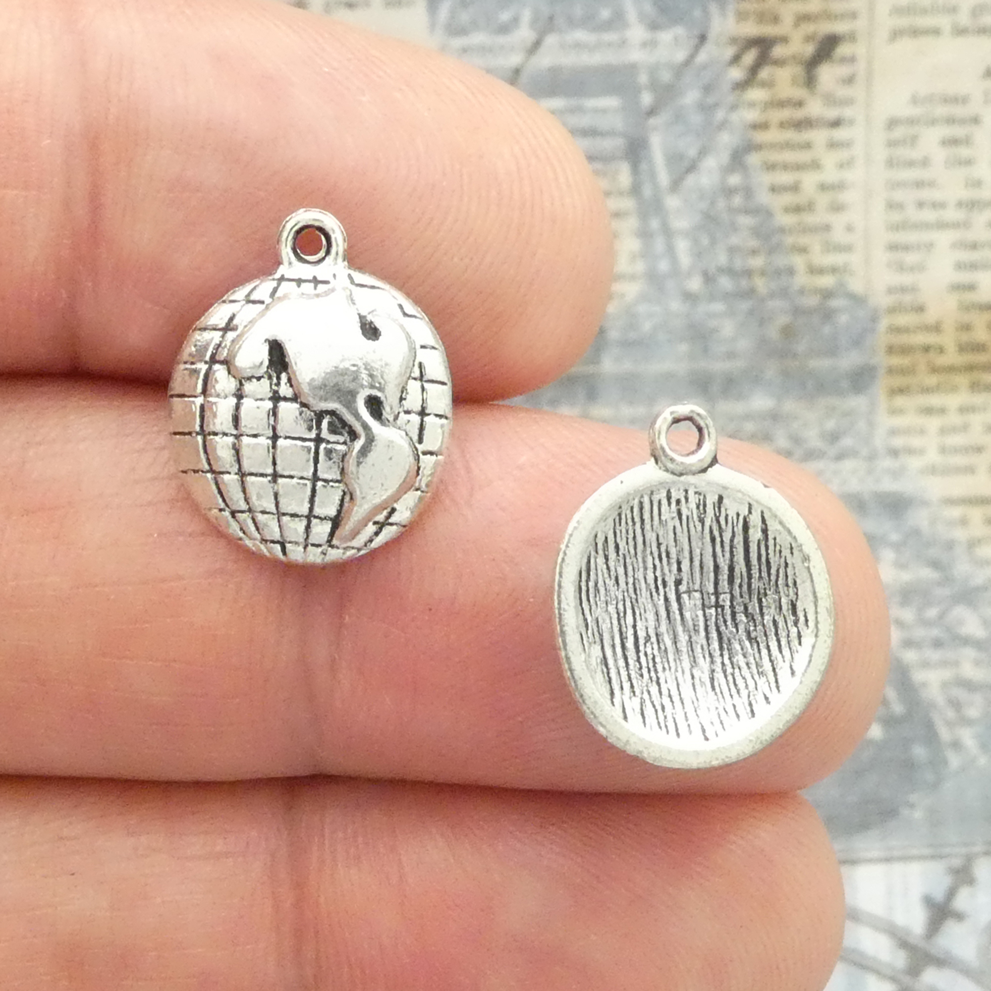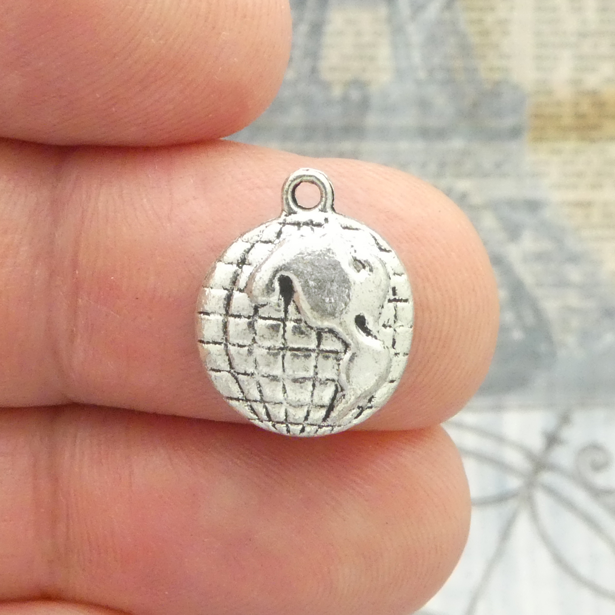 10 Silver Globe Charm Travel Map Pendant 16x13mm by TIJC SP0725