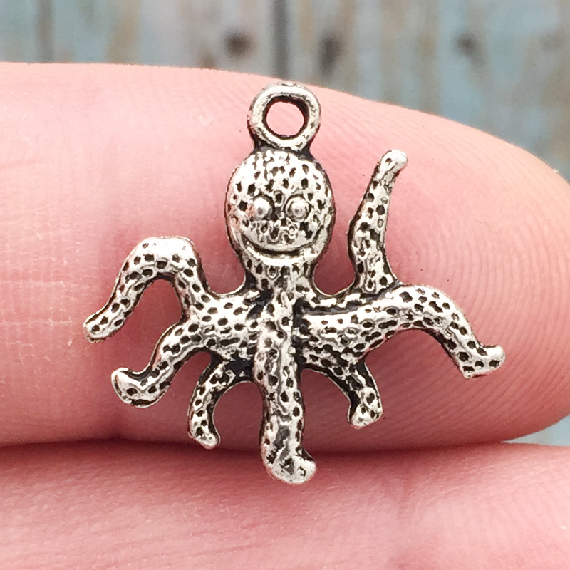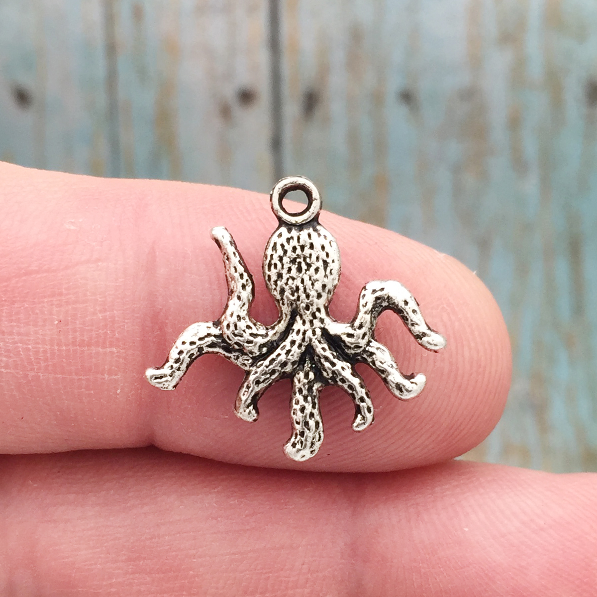 You will receive 10 – Double Sided Small Double Sided Octopus Pendant in Silver by TIJC! These charms are a quality Silver Pewter for all your jewelry and crafting projects!