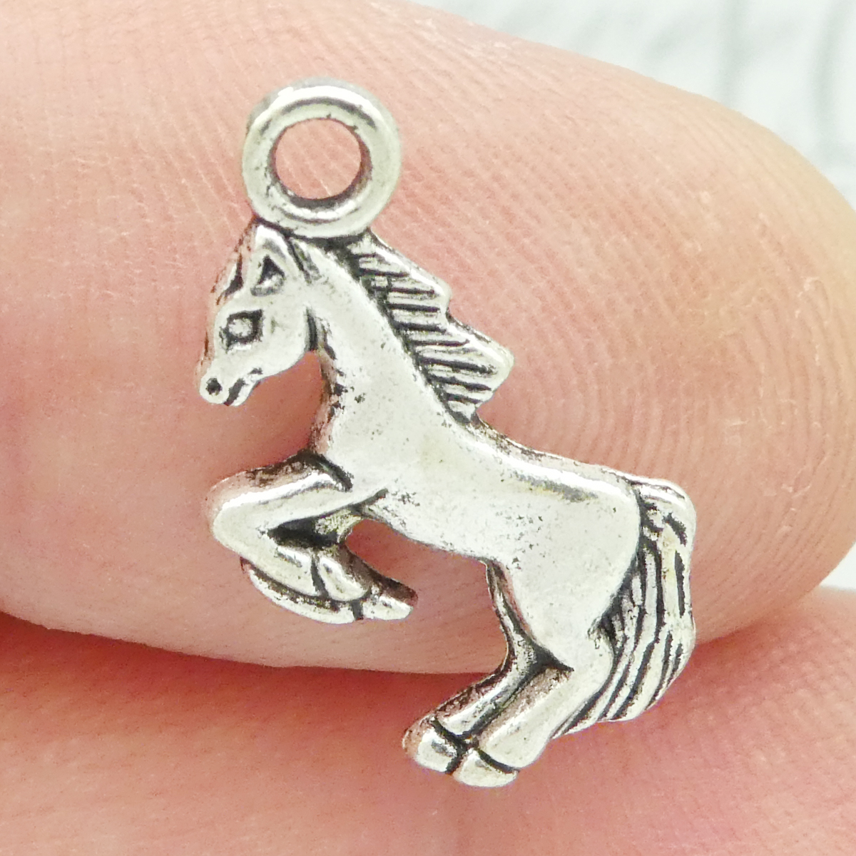 You will receive 12 – Small Silver Horse Pendant in Pewter! These charms are a quality Silver Pewter for all your jewelry and crafting projects!