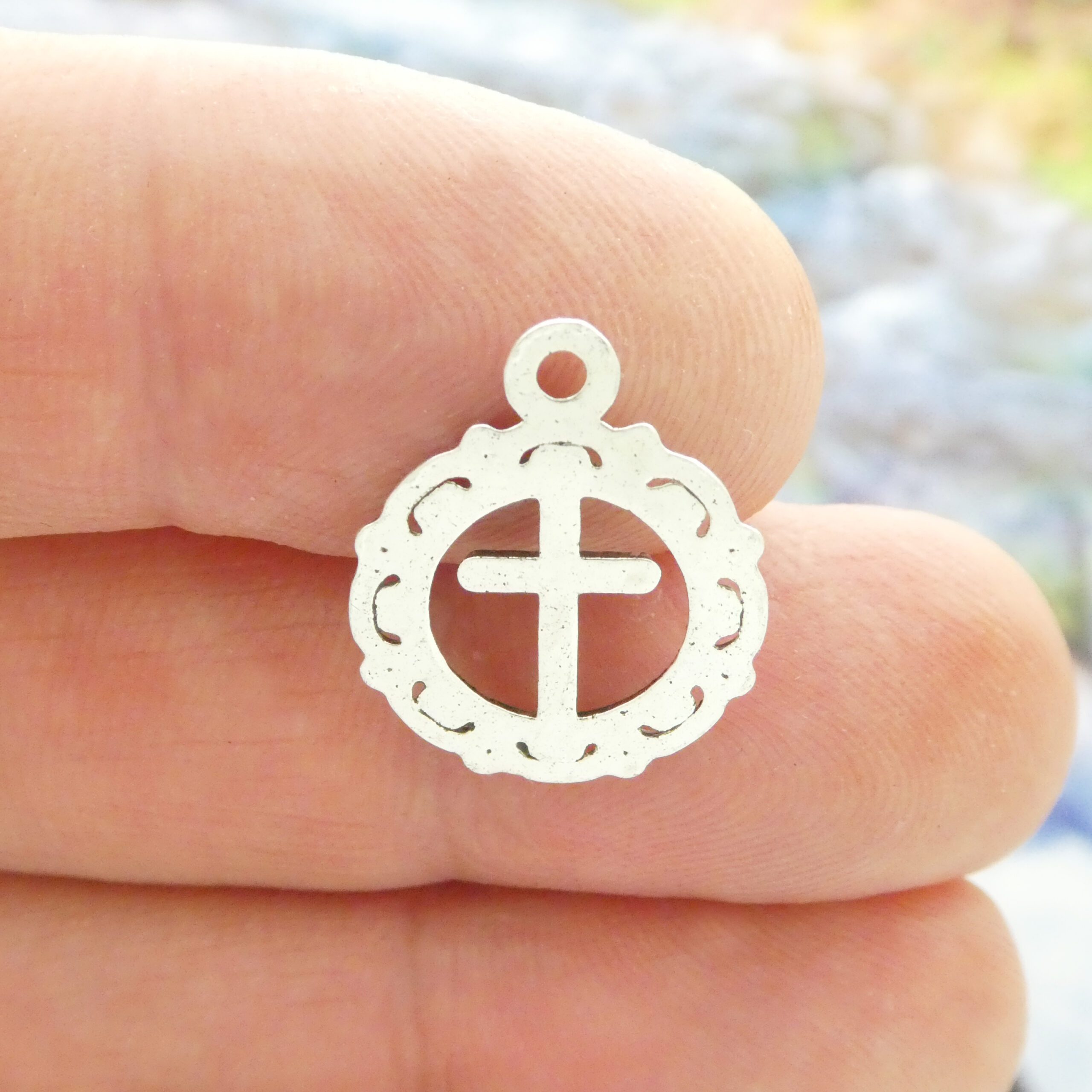You will receive 12 – Round Cross Charm Open Disk by TIJC! These charms are a quality Silver Pewter for all your jewelry and crafting projects!
