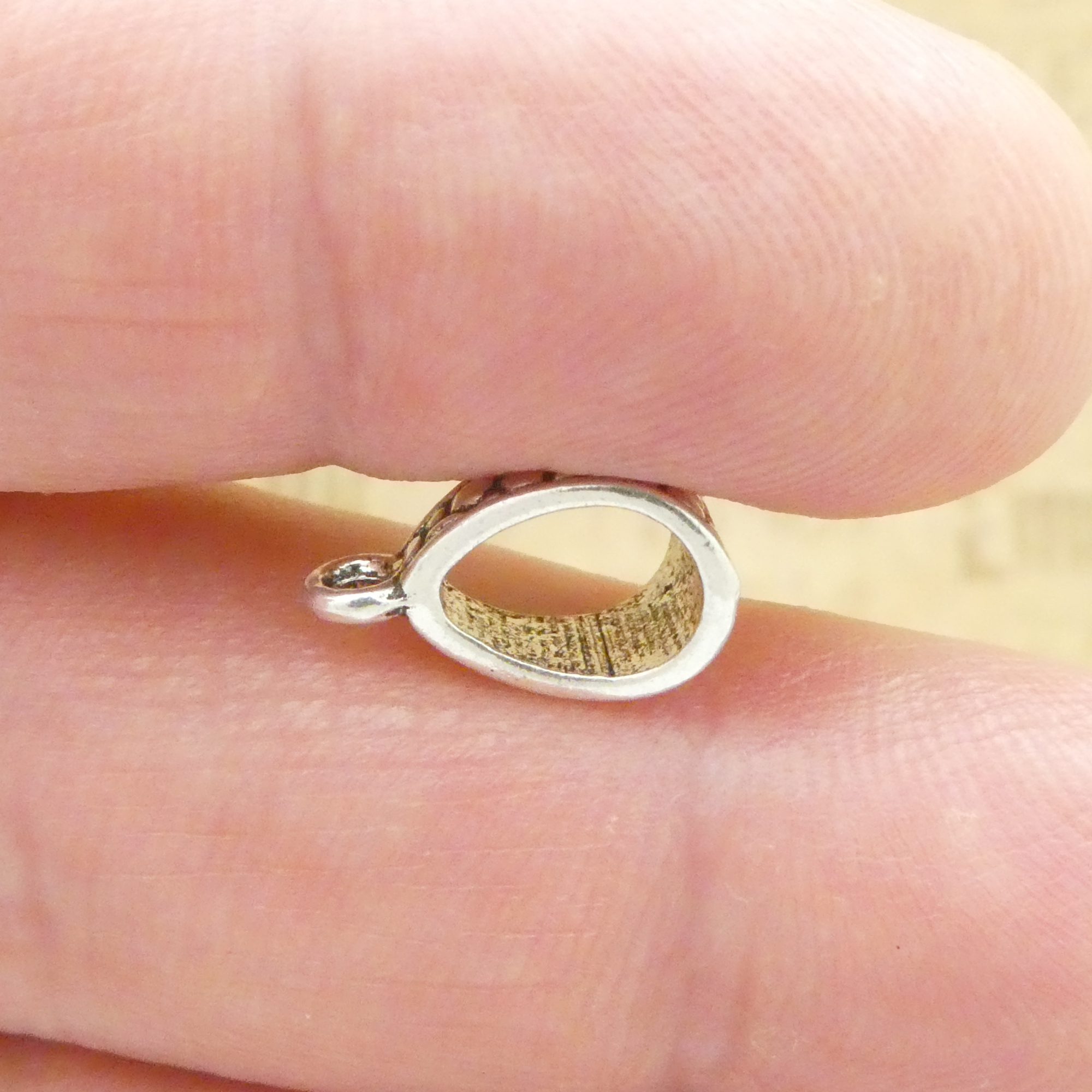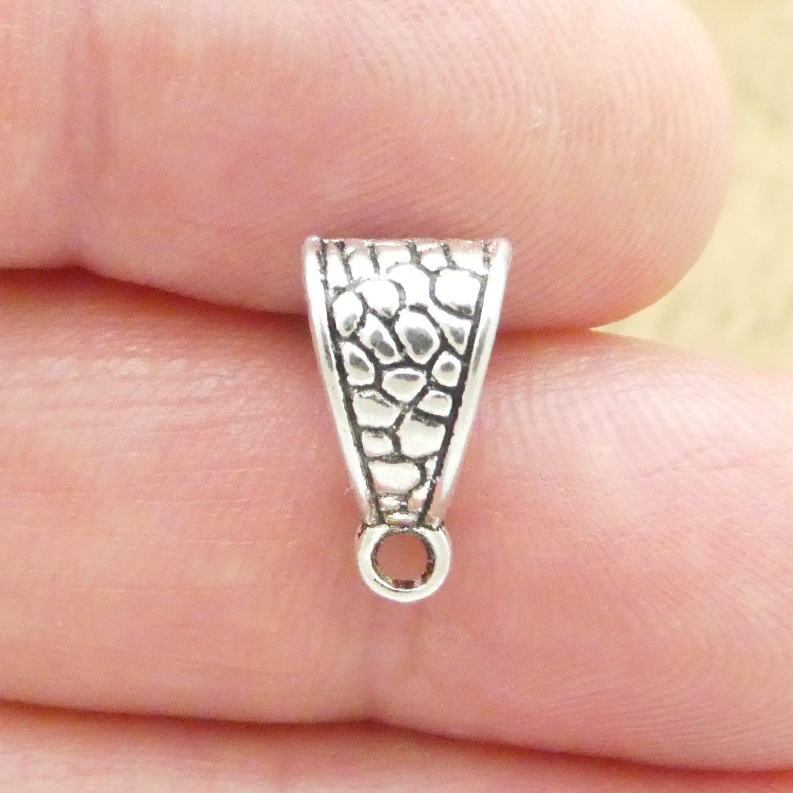 You will receive 12 – Small V Jewelry Bails with Alligator Accents in Silver Pewter! This Bail has a 5mm Hole. These charms are a quality Silver Pewter for all your jewelry and crafting projects!