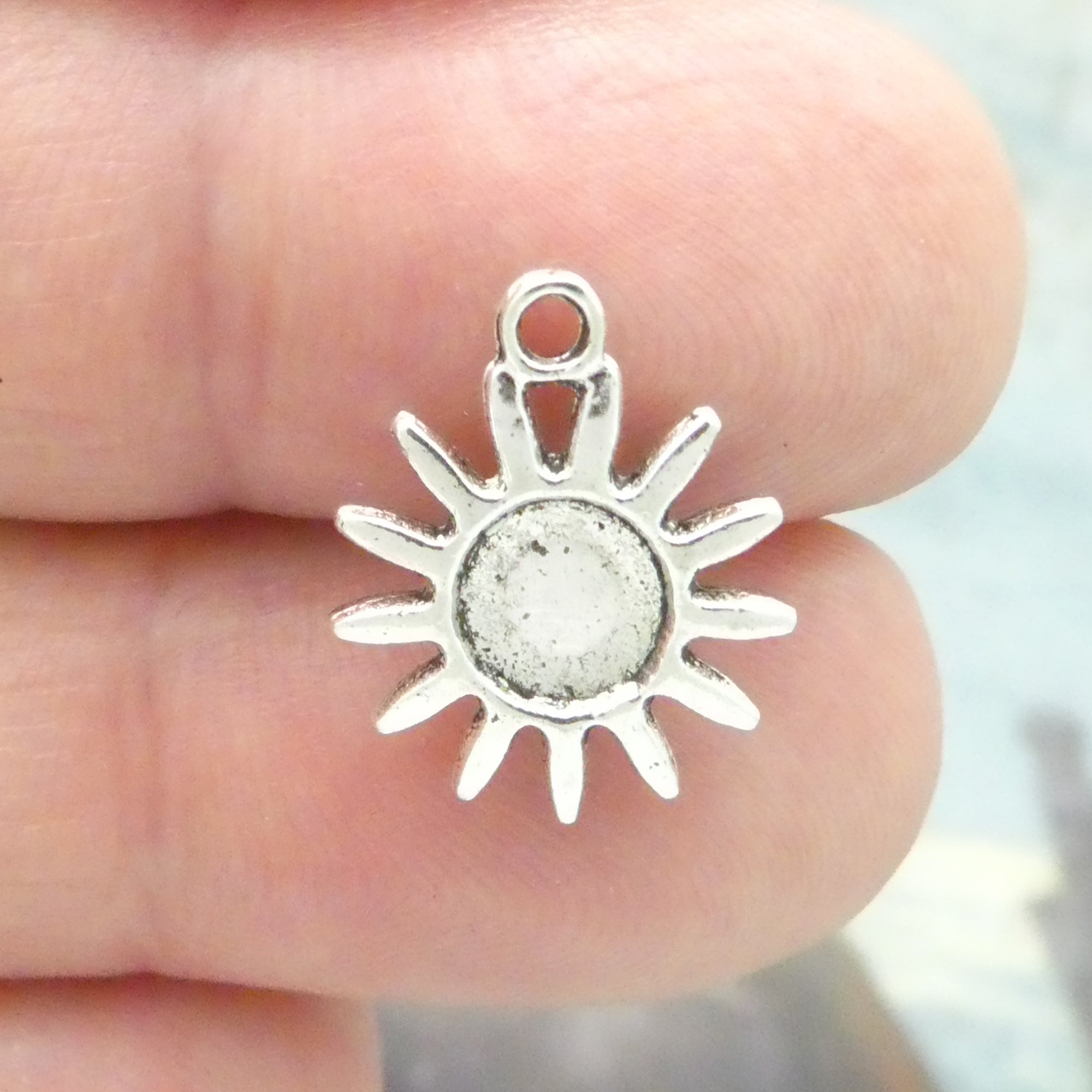 You will receive 12 – Small Sunflower Pendant in Antique Silver Pewter. These charms are a quality Silver Pewter for all your jewelry crafting projects!