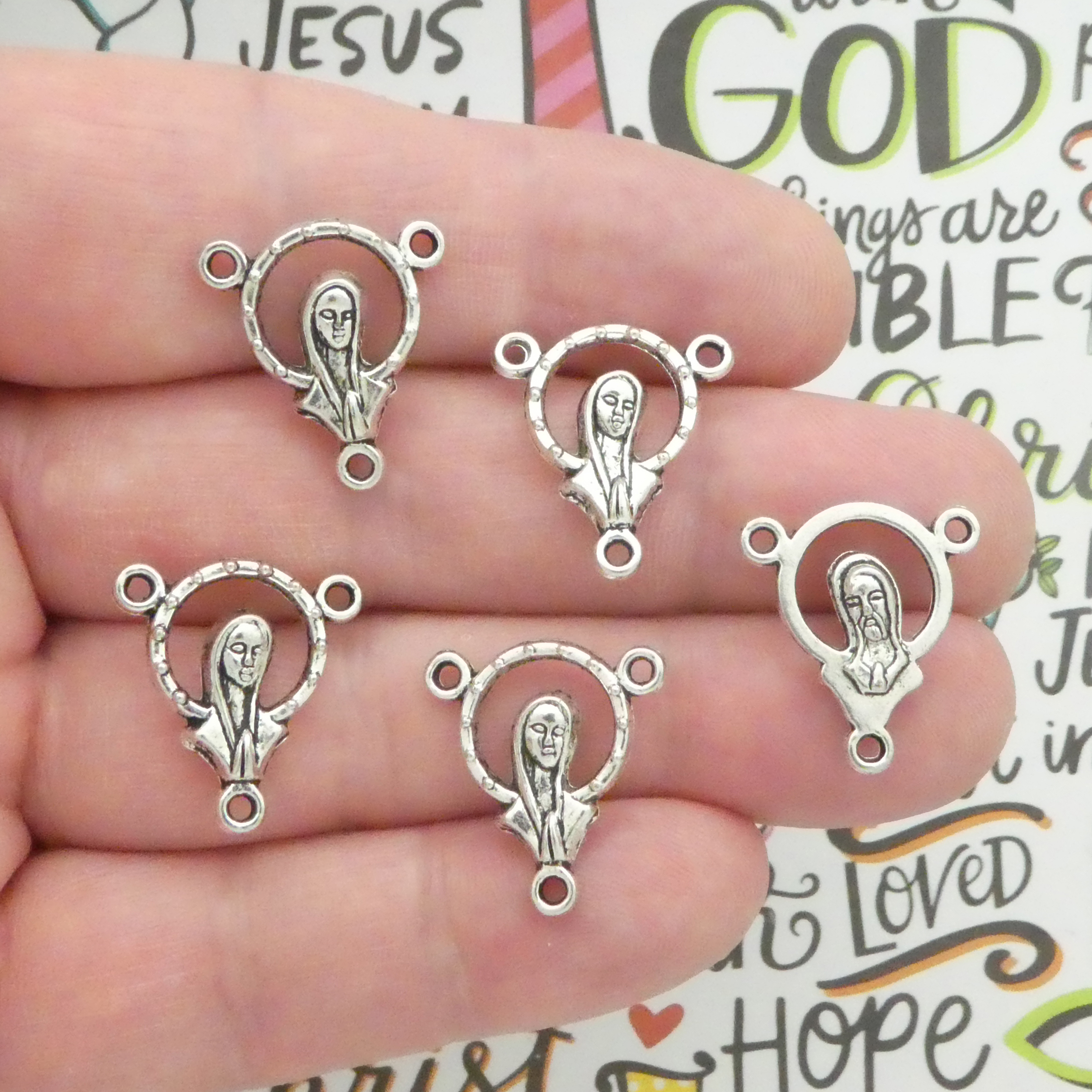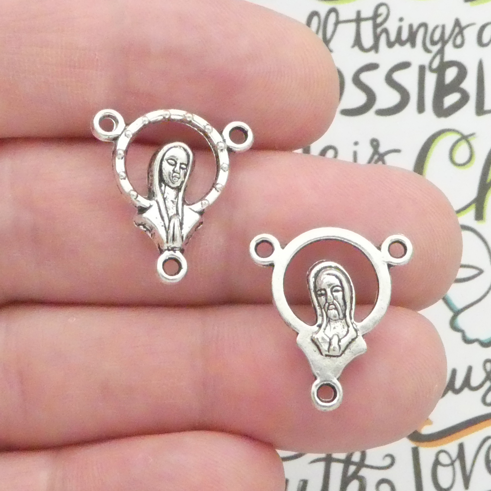You will receive 12 – Jesus and Virgin Mary Rosary Supplies in Antique Silver Pewter by TIJC. These charms are a quality Silver Pewter for all your jewelry and crafting projects!