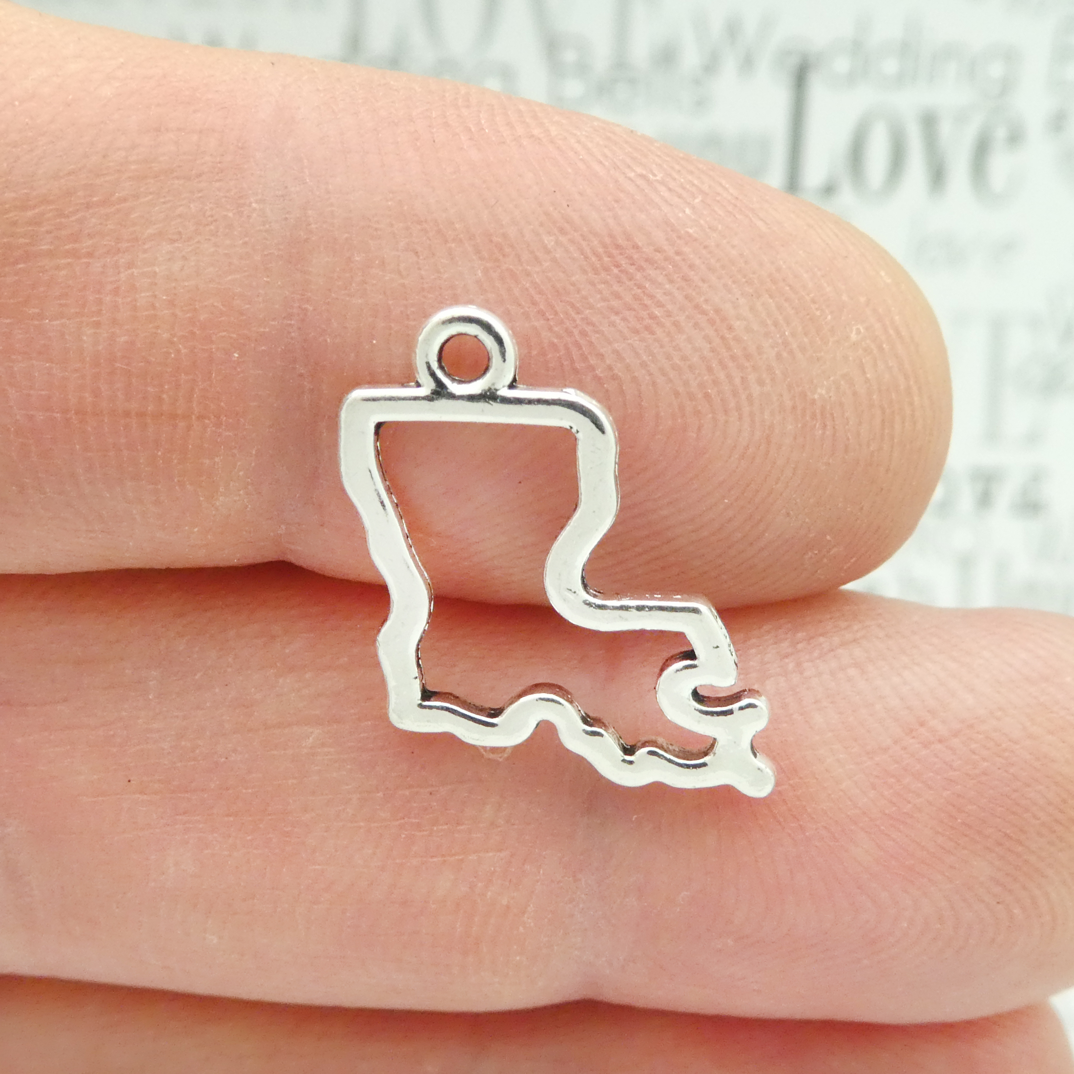 Show off Your Louisiana Pride with Louisiana Charms Silver Small! Description: Louisiana Charms Silver Small is the perfect way to show off your Louisiana pride. These charms are made of silver pewter and feature iconic symbol of the outline of Louisiana. The charms are small enough to fit on a charm bracelet, necklace, or even earrings. They make a great gift for anyone who loves Louisiana or is from the state. With the Louisiana Charms Silver Small, you can show your state pride wherever you go. The charms are easy to attach to any type of jewelry. Simply add a small jump ring at the top of the charm to attach it to your jewelry. You can also use jump rings to attach the charms to a necklace or bracelet. You can mix and match the charms for a unique look or keep them all the same for a more classic look. The charms are also perfect for crafting projects. You can add them to scrapbook pages, cards, and other paper crafts for a personalized touch. No matter how you choose to use them, Louisiana Charms Silver Small will be sure to show off your state pride in style. With these charms, you can show your love for Louisiana wherever you go. So show off your state pride with Louisiana Charms Silver Small today!