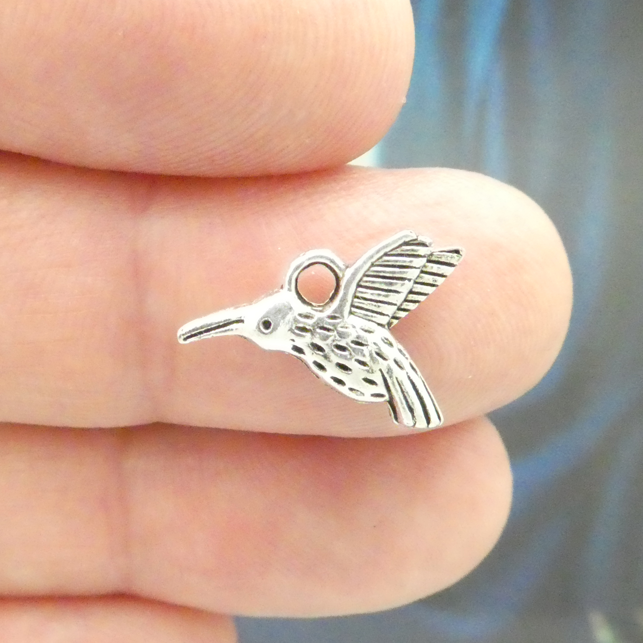 You will receive 15 – Double Sided Hummingbird Bird Charm in Silver Pewter! These charms are a quality Silver Pewter for all your jewelry and crafting projects!