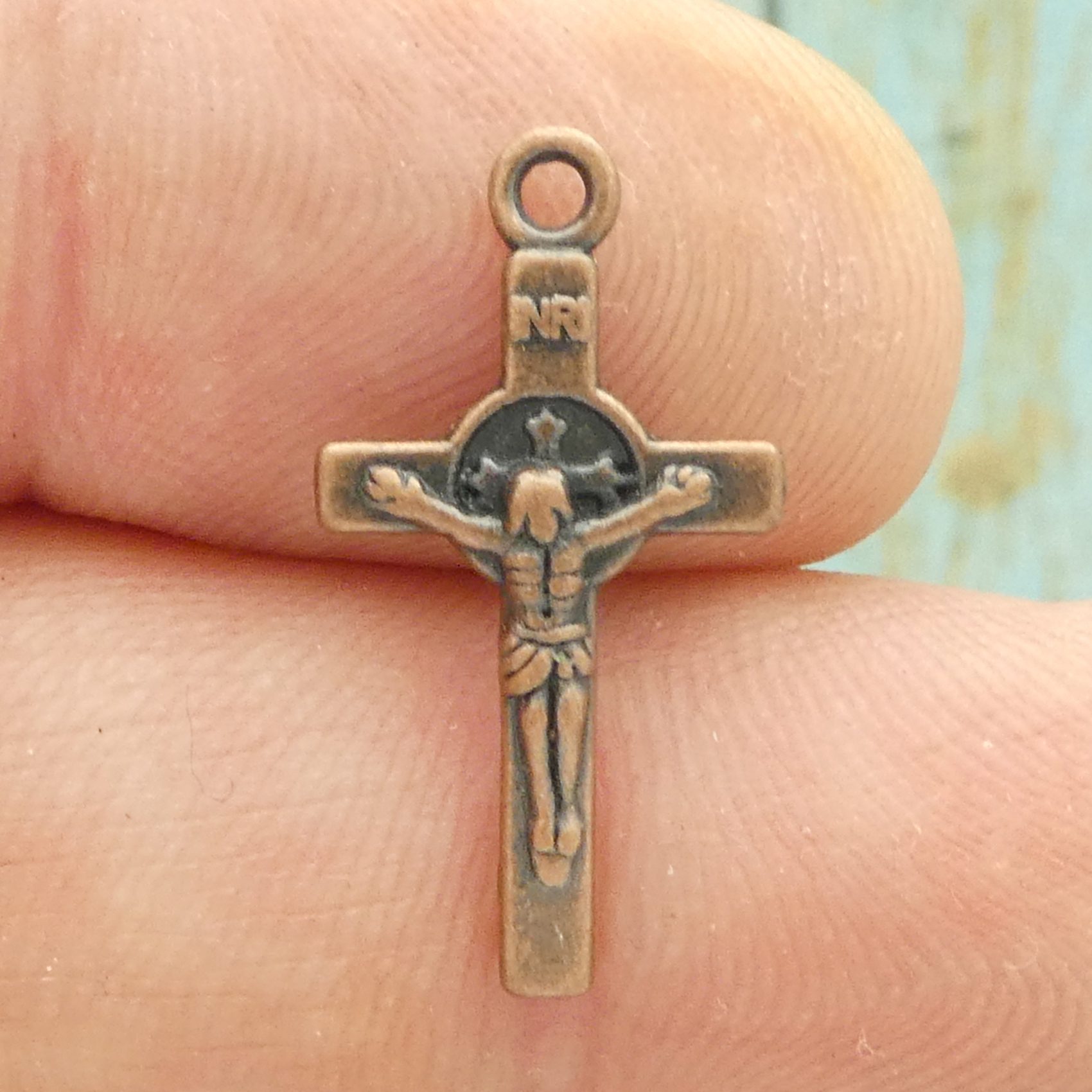 10 St Benedict Crucifix Cross Charm Copper Small by TIJC SP1740