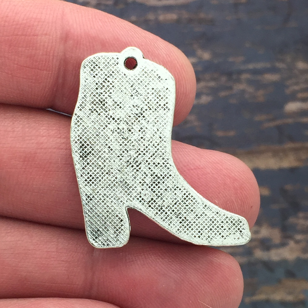 You will receive 2 – Cowboy Boot Charms in Silver Pewter with AB Crystal Accents 34x31mm by TIJC! These charms are a quality Silver Pewter for all your jewelry and crafting projects!