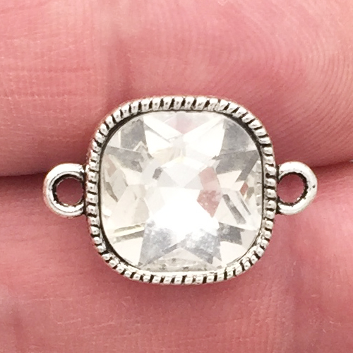 You will receive 2 – Clear Crystal Connector Pendant in Silver Pewter. These charms are a quality Silver Pewter for all your jewelry and crafting projects!