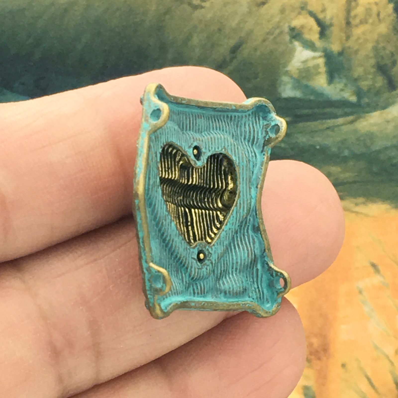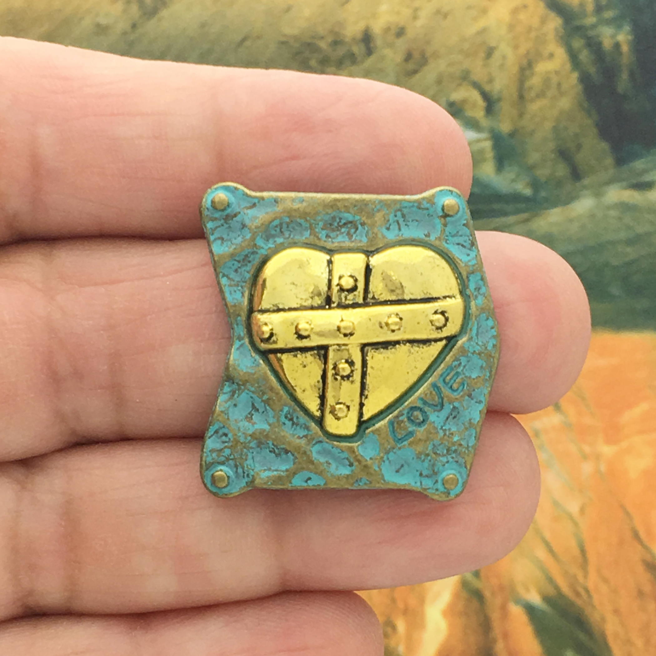 You will receive 2 – Gold Heart Bracelet Connector in Oxidized Turquoise Pewter and Gold Accent with the word Love! These charms are a quality Pewter for all your jewelry and crafting projects!