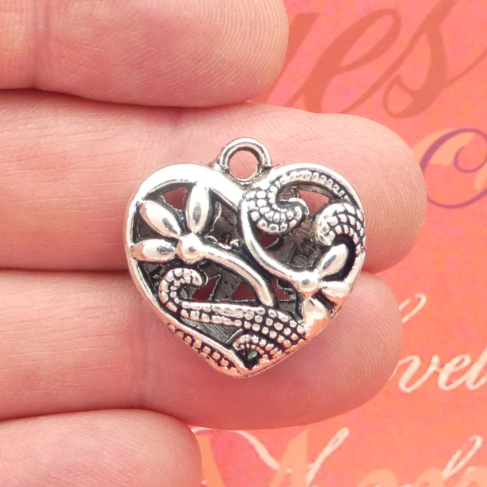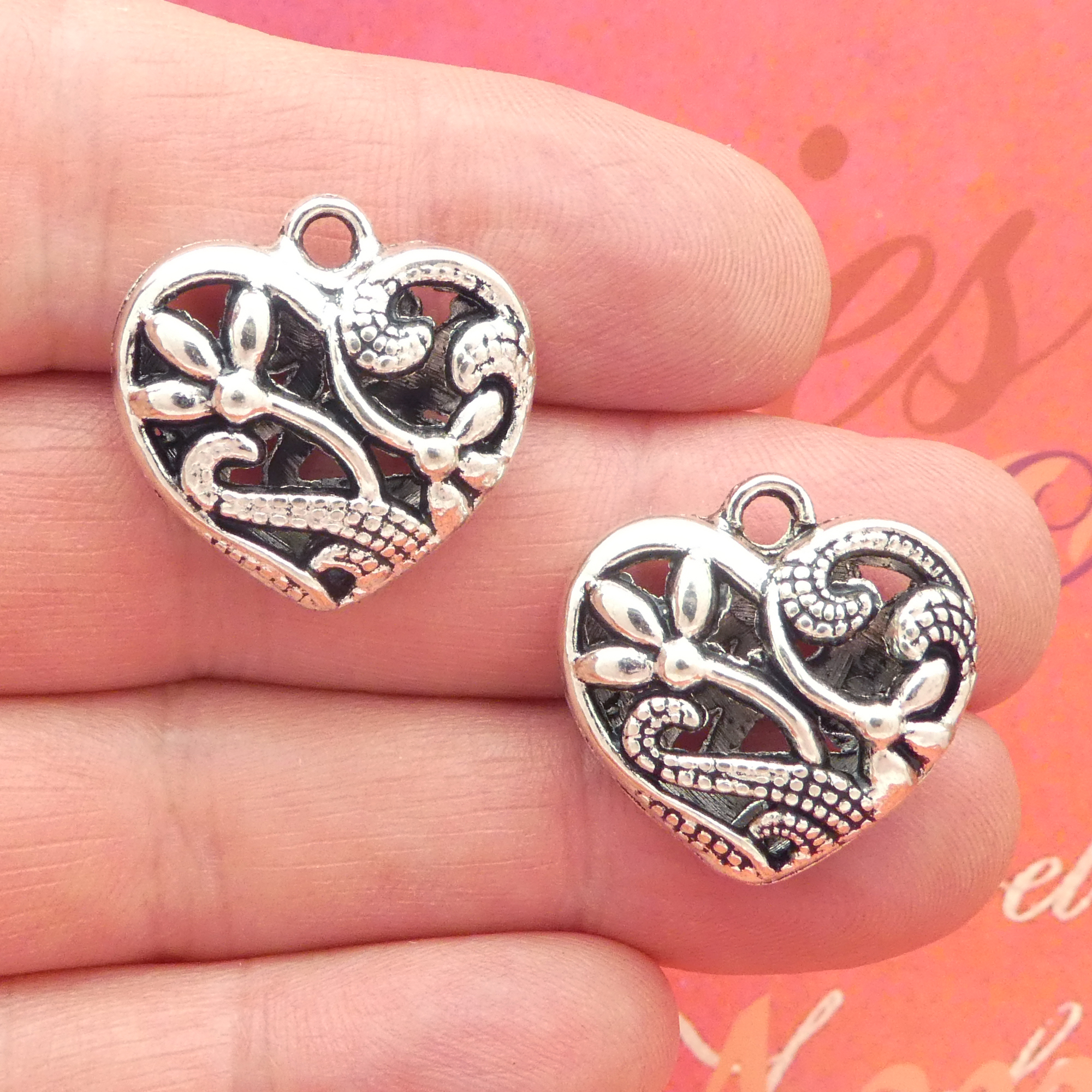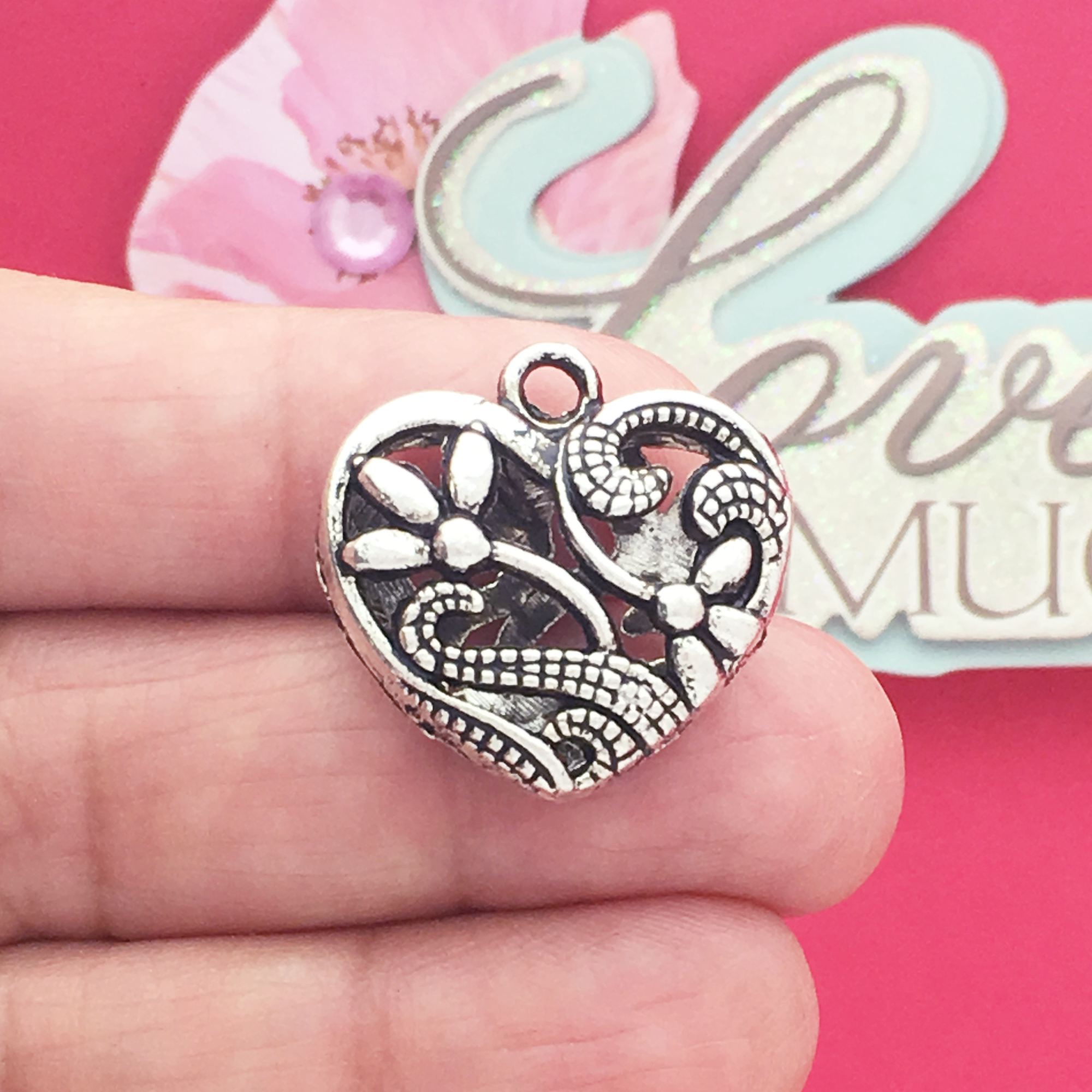 You will receive 2 – Medium Flower Filigree Heart Pendant in Antique Silver Pewter by TIJC. These charms are a quality Silver Pewter for all your jewelry and crafting projects!