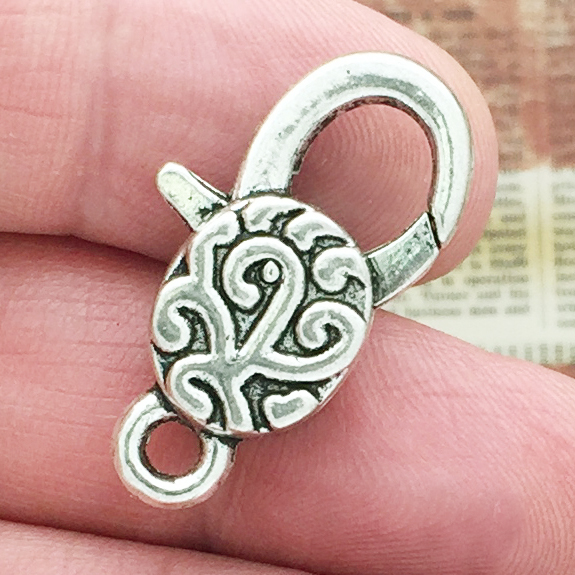 You will receive 2 – Double Sided Lobster Clasp with Ornate Design in Antique Silver Pewter 30x17mm by TIJC! These charms are a quality Silver Pewter for all your jewelry and crafting projects!