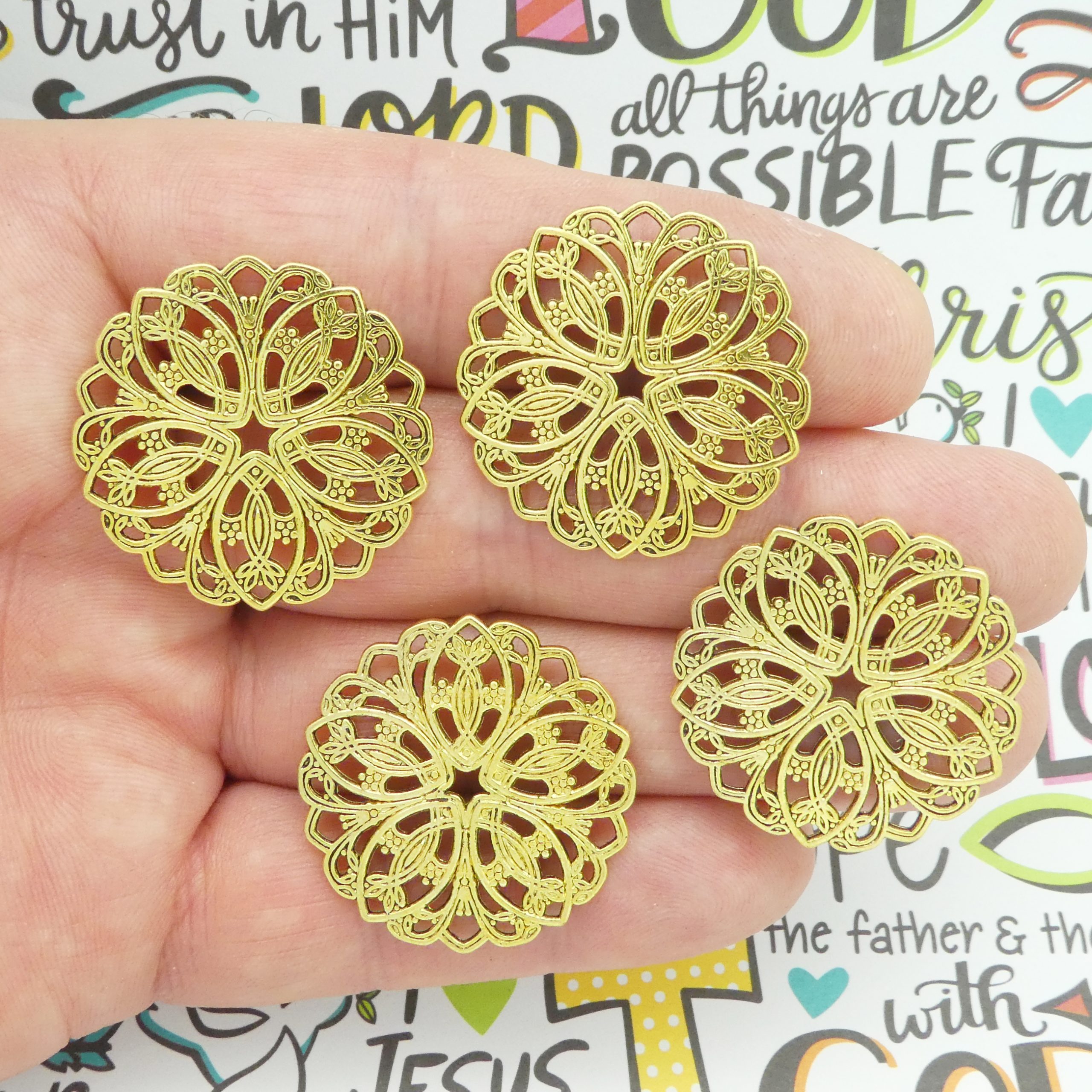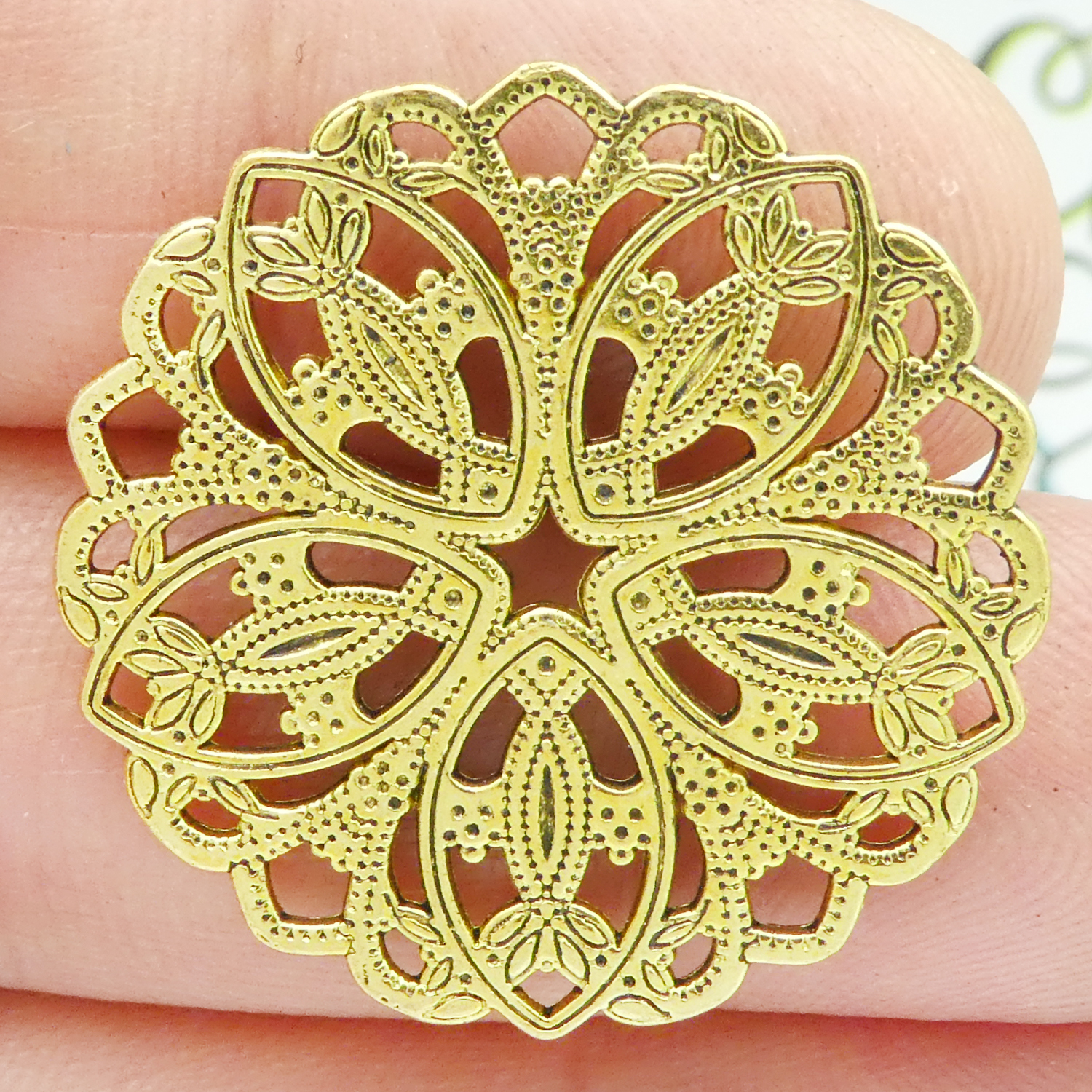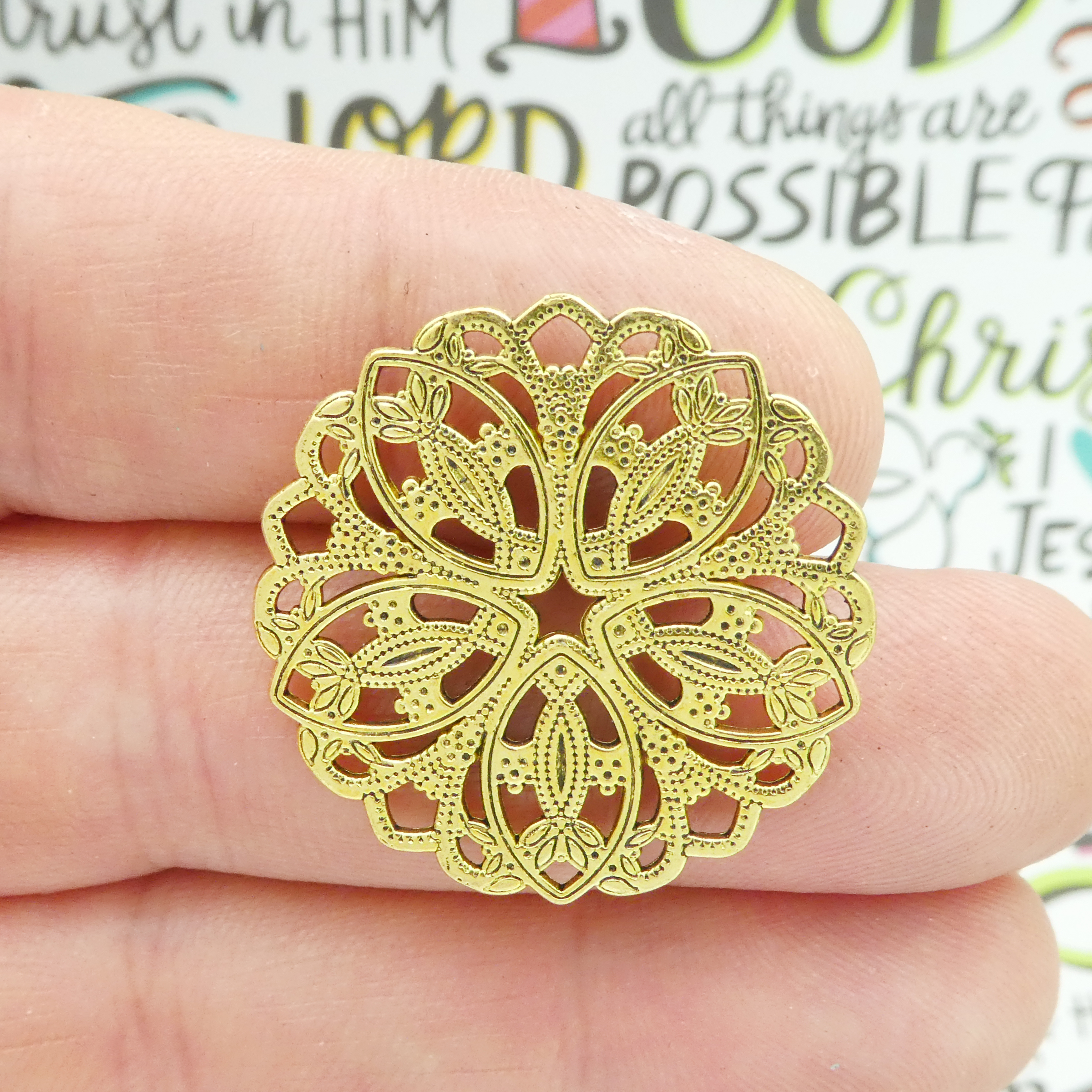 You will receive 2 – Round Ornate Antique Gold Pewter Pendant. These charms are a quality Gold Pewter for all your jewelry and crafting projects!