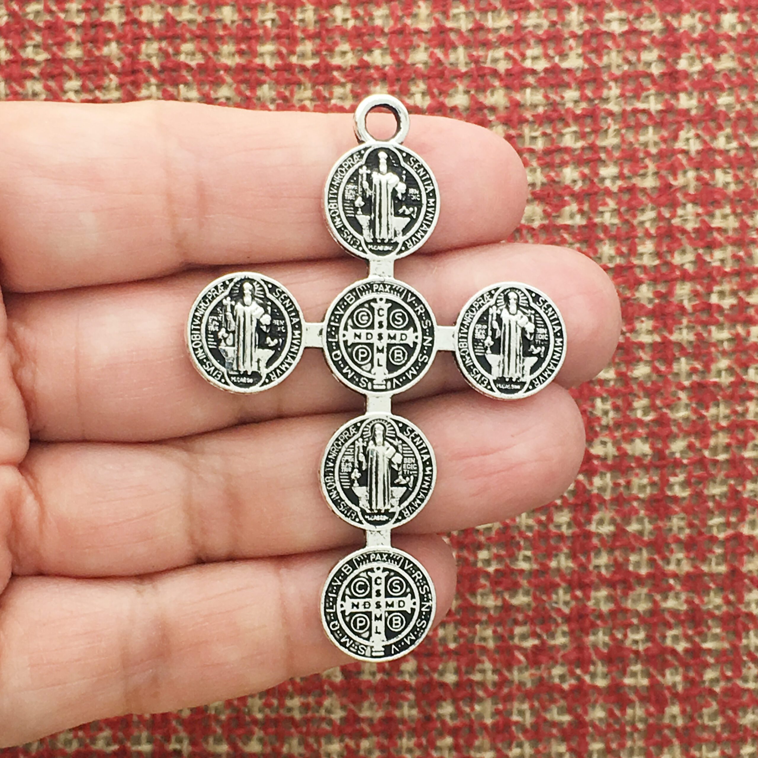 You will receive 2 – St Benedict Medal Cross in Silver Pewter by TIJC . These charms are a quality Silver Pewter for all your jewelry and crafting projects!