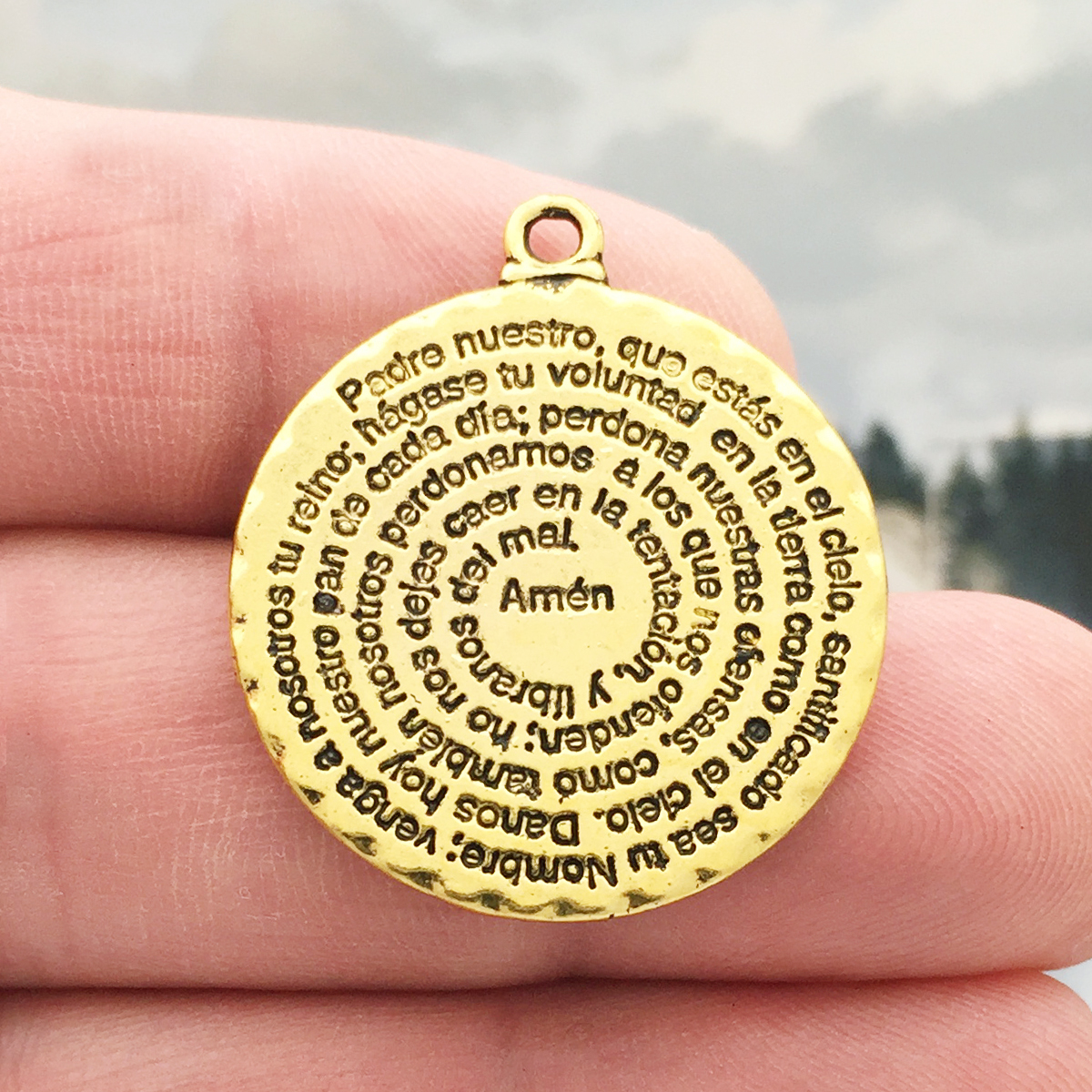 You will receive 2 – Ornate Large Spanish Disk Prayer Charms made of Gold Pewter by TIJC. These charms are a quality Pewter for all your jewelry and crafting projects!