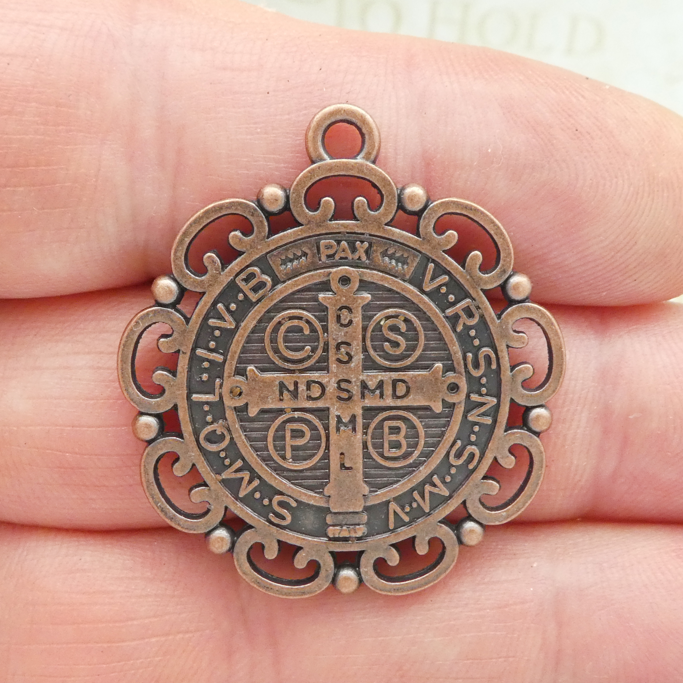 Ward off Evil with St Benedict Charm Medal Copper The St Benedict Charm Medal Copper is a powerful and spiritual item that has been used for centuries to ward off evil and bring good luck. It is believed that by wearing or carrying the medal, one can be protected from evil forces and experience blessings from the heavens. The medal is made from copper plated pewter and features a cross, an image of St Benedict, and the words “Vade Retro Satana” which translates to “Begone Satan”. It is believed that this phrase is powerful enough to keep evil away. The medal can be worn as a necklace, bracelet, or carried in a pocket or purse. It is believed that the medal should be worn or carried on the person at all times for maximum protection. Additionally, it is said that the medal should be blessed by a priest before being used. This will increase its power and effectiveness in protecting the wearer from evil forces. The St Benedict Charm Medal Copper is a powerful item that has been used for centuries to protect people from evil forces. It can be worn or carried on the person and should be blessed by a priest before use. By wearing or carrying the medal, one can be protected from evil and experience blessings from the heavens. With this powerful charm, you can be sure to ward off evil and bring good luck into your life.