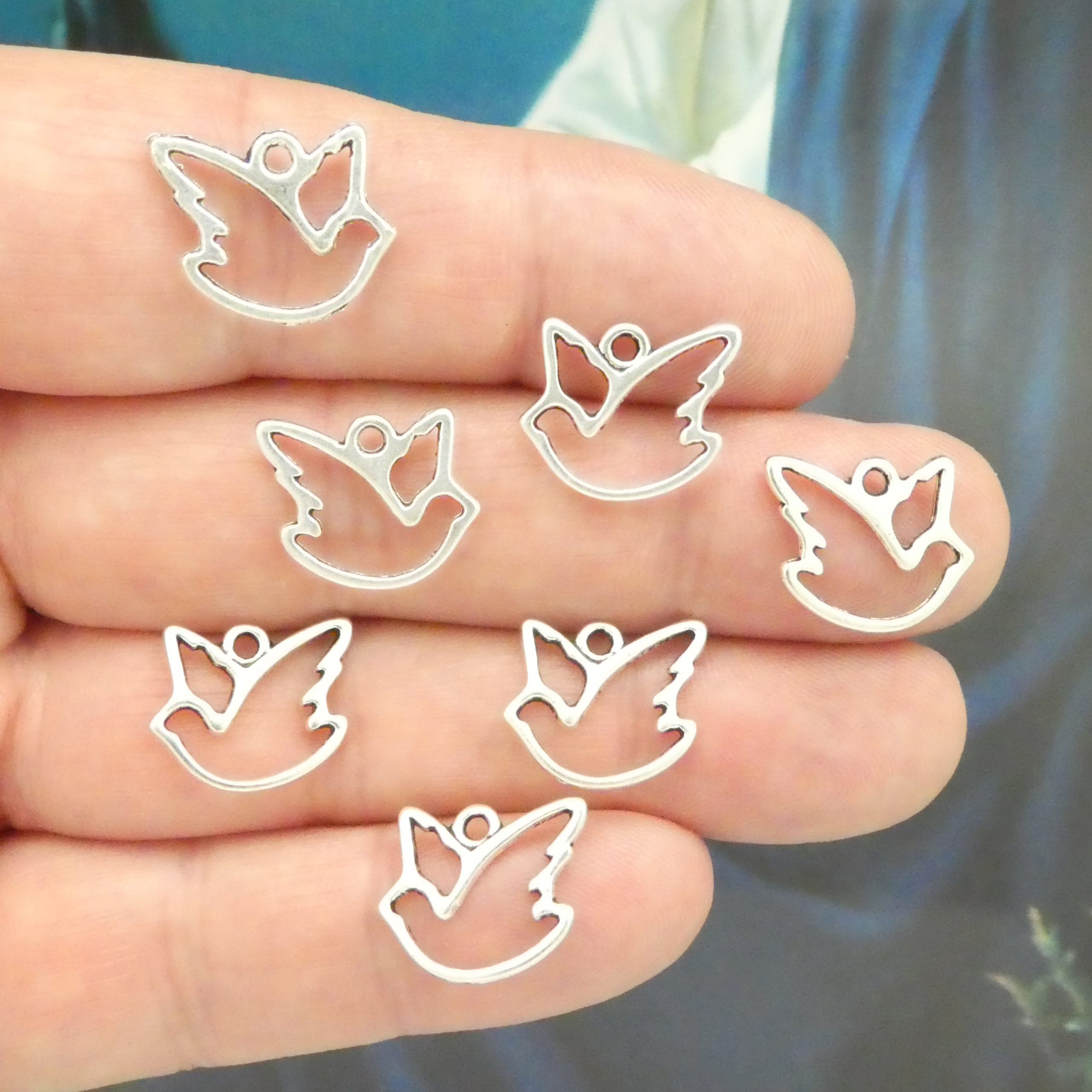 You will receive 20 – Small Open Double Sided Dove Peace Charm in Antique Silver Pewter. These charms are a quality Silver Pewter for all your jewelry and crafting projects!