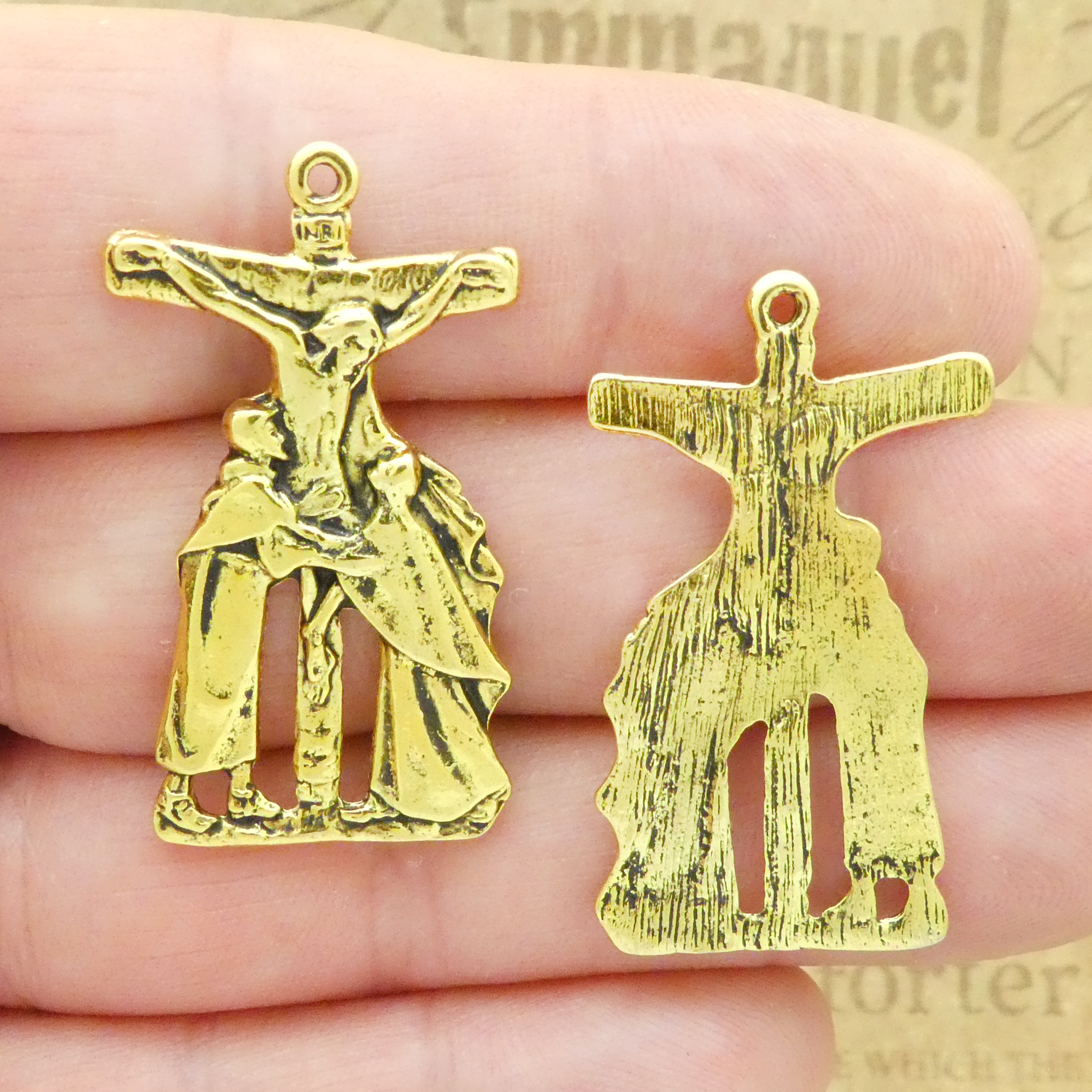 You will receive 3 – Medium Catholic Rosary Gold Cross Crucifix Charms in Antique Pewter! Use this Antique Pewter Cross for Rosary Parts in making a Catholic Rosary. These charms are a quality Pewter for all your jewelry and crafting projects!
