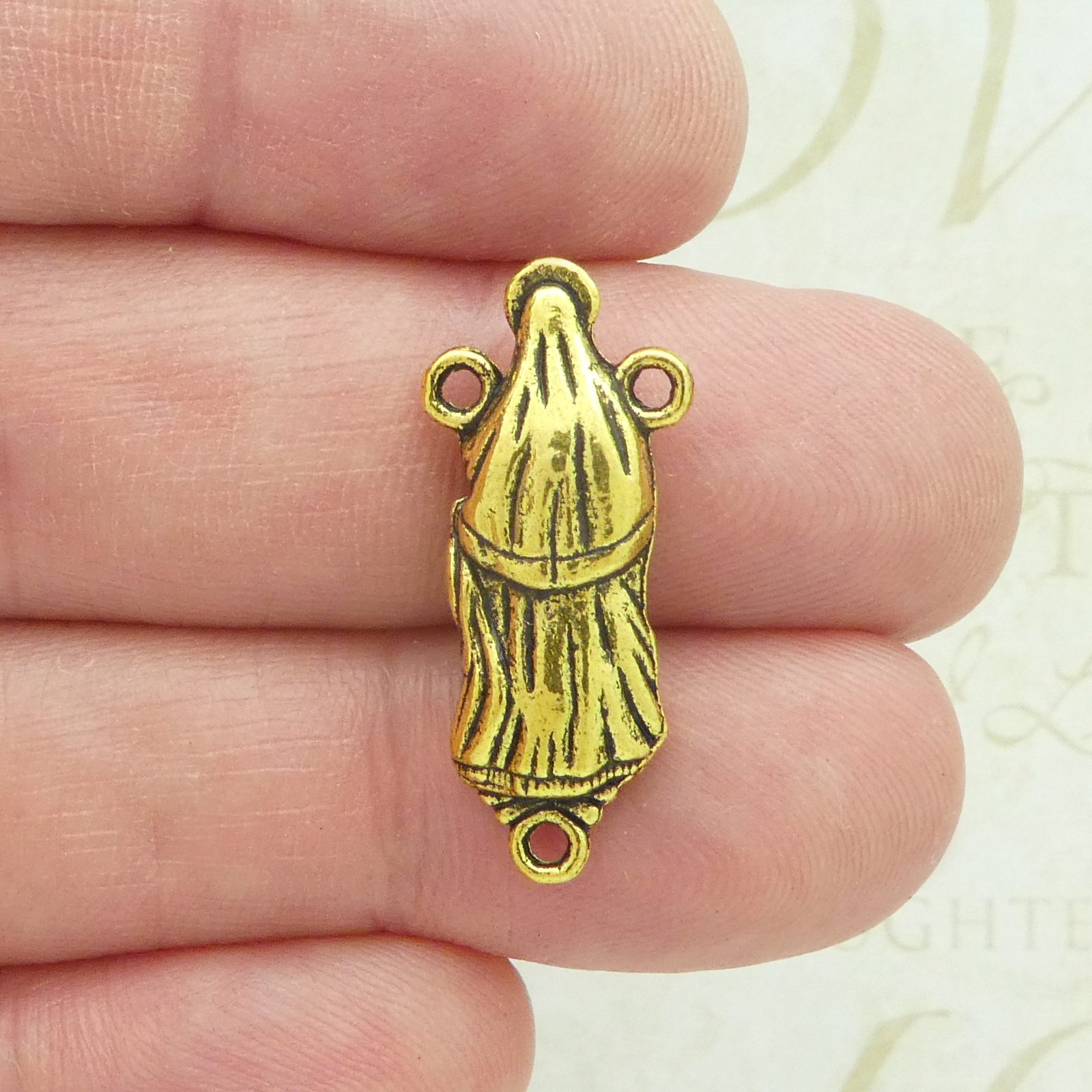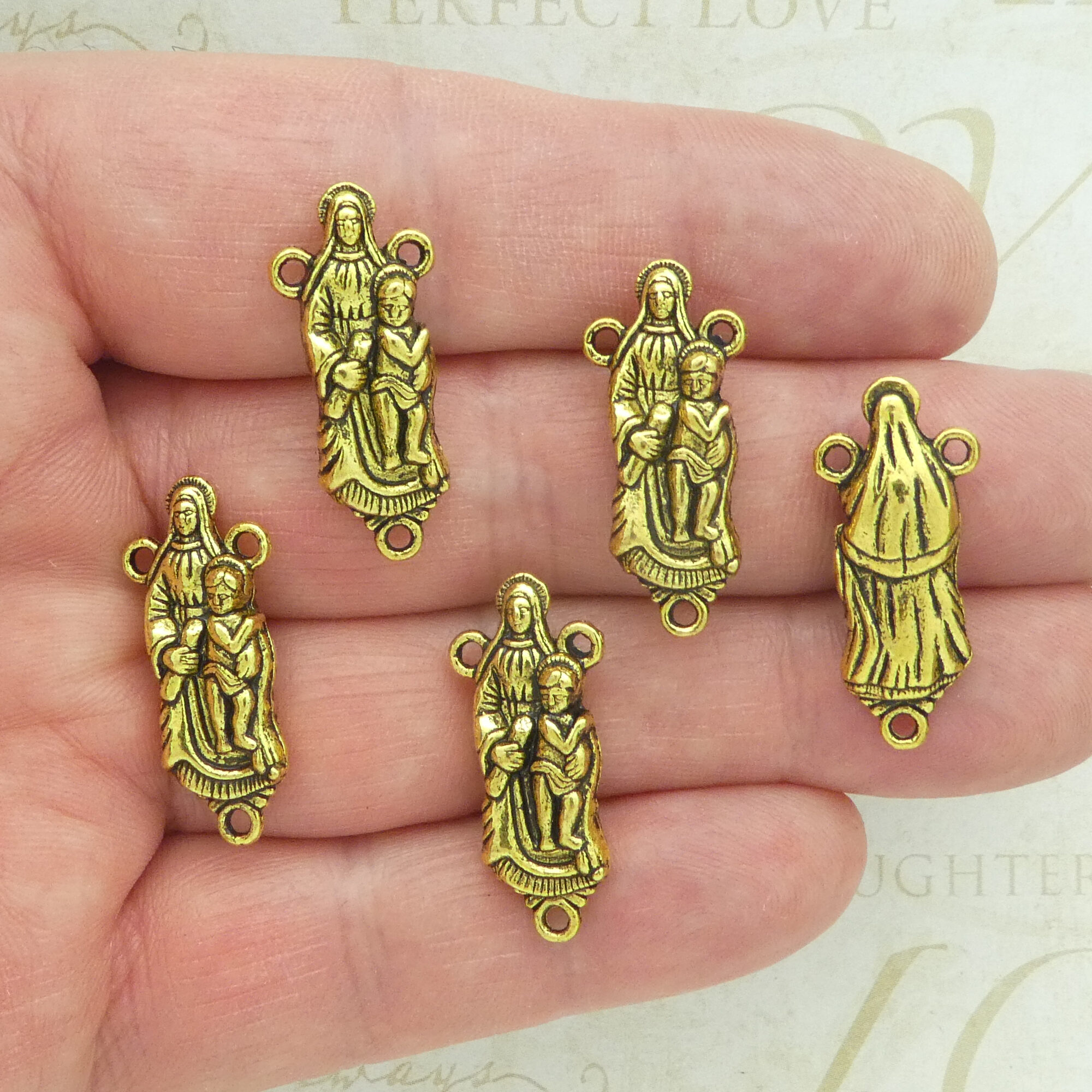 You will receive 3 – 3D Virgin Mary and Jesus Rosary Center in Antique Gold Pewter by TIJC. These charms are a quality Pewter for all your jewelry and crafting projects!