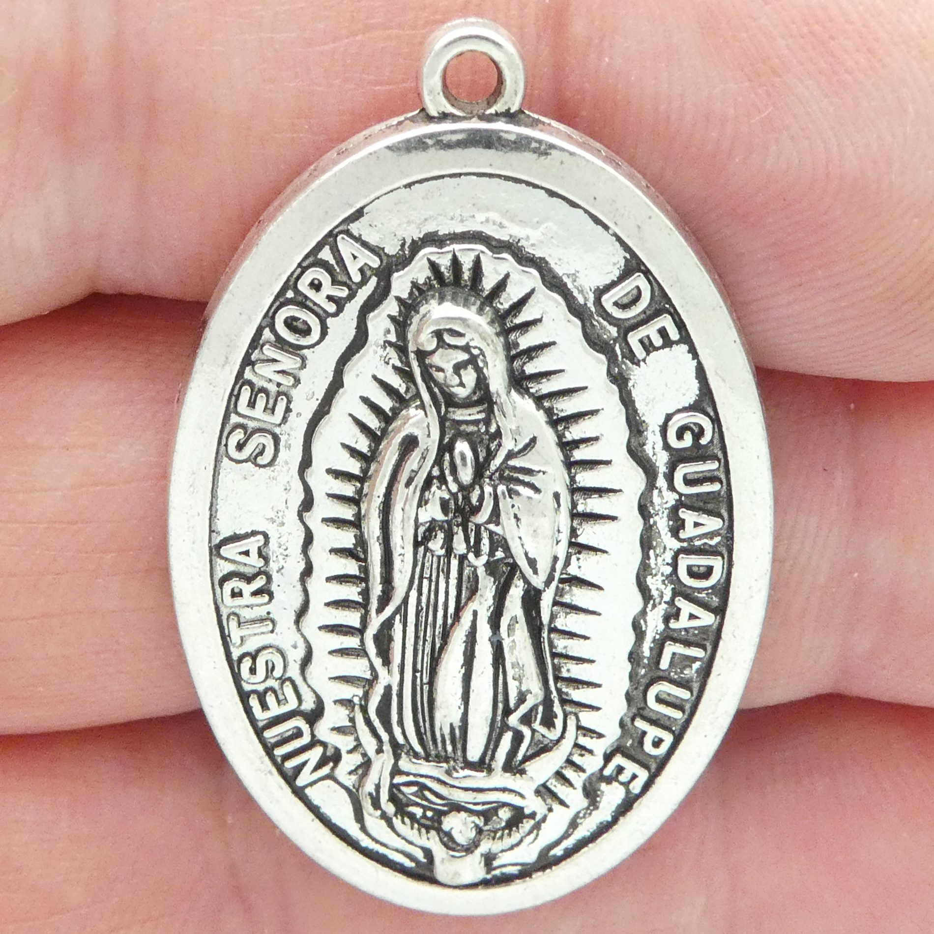 You will receive 3 – Antique Silver Pewter Lady Guadalupe Virgin Mary Pendant. These charms are a quality Silver Pewter for all your jewelry and crafting projects!