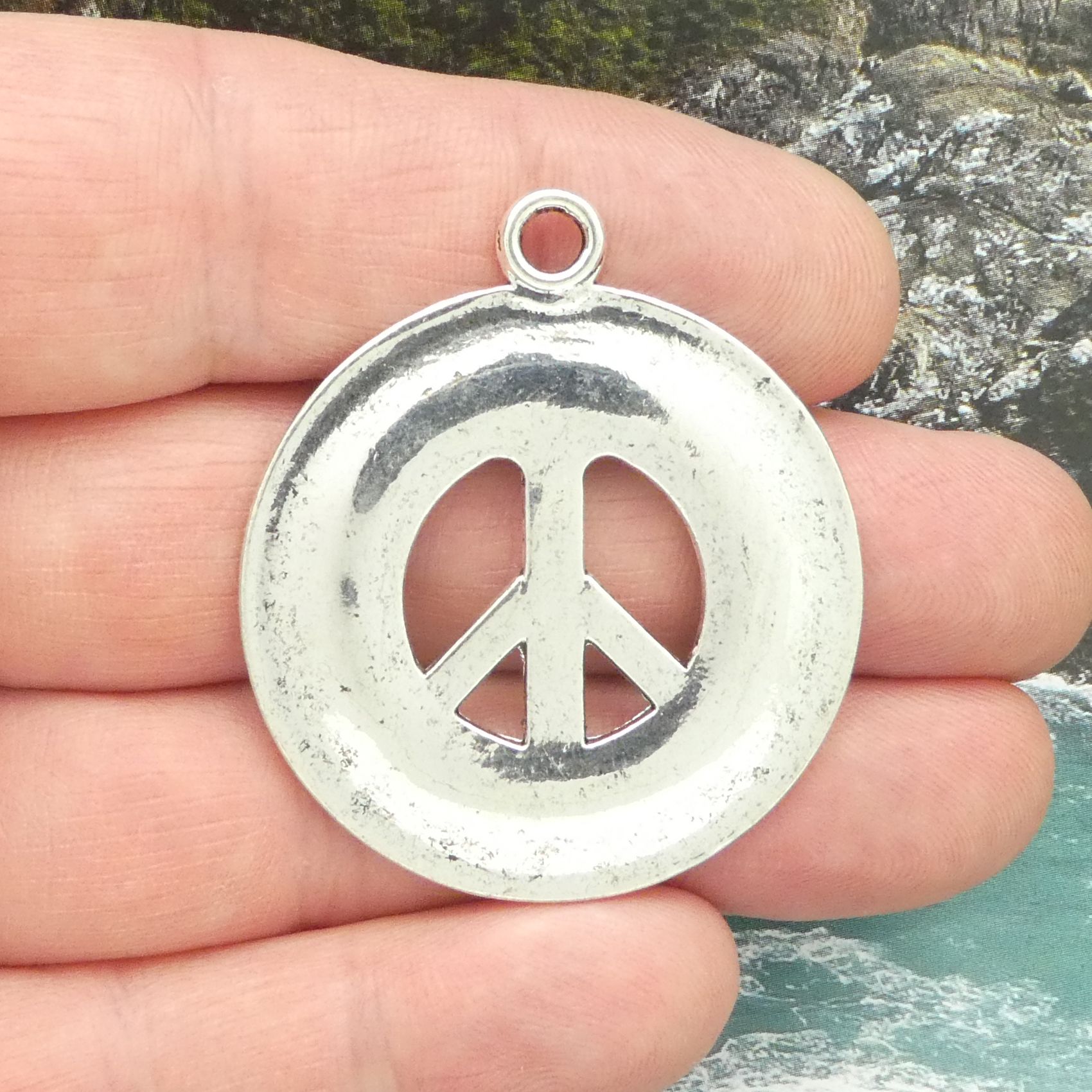 You will receive 3 – Large Peace Sign Charm in Antique Silver Pewter by TIJC. These charms are a quality Silver Pewter for all your jewelry and crafting projects!